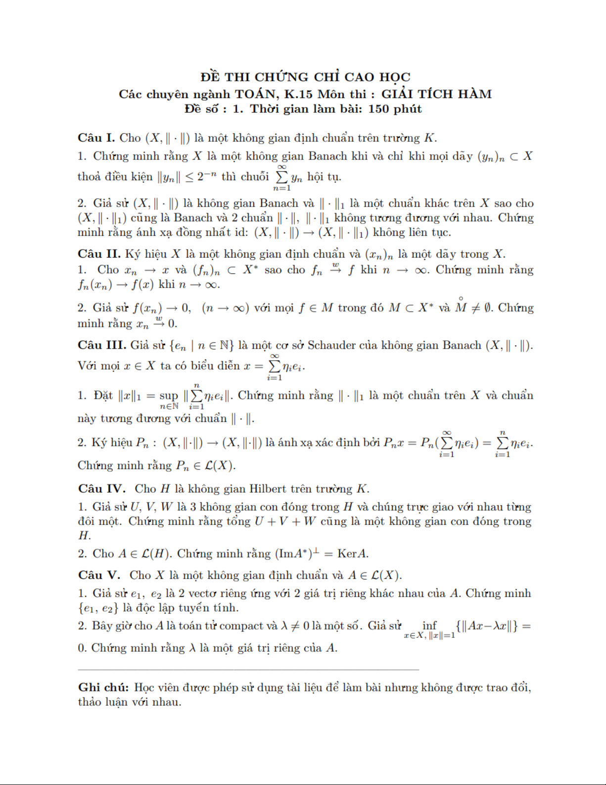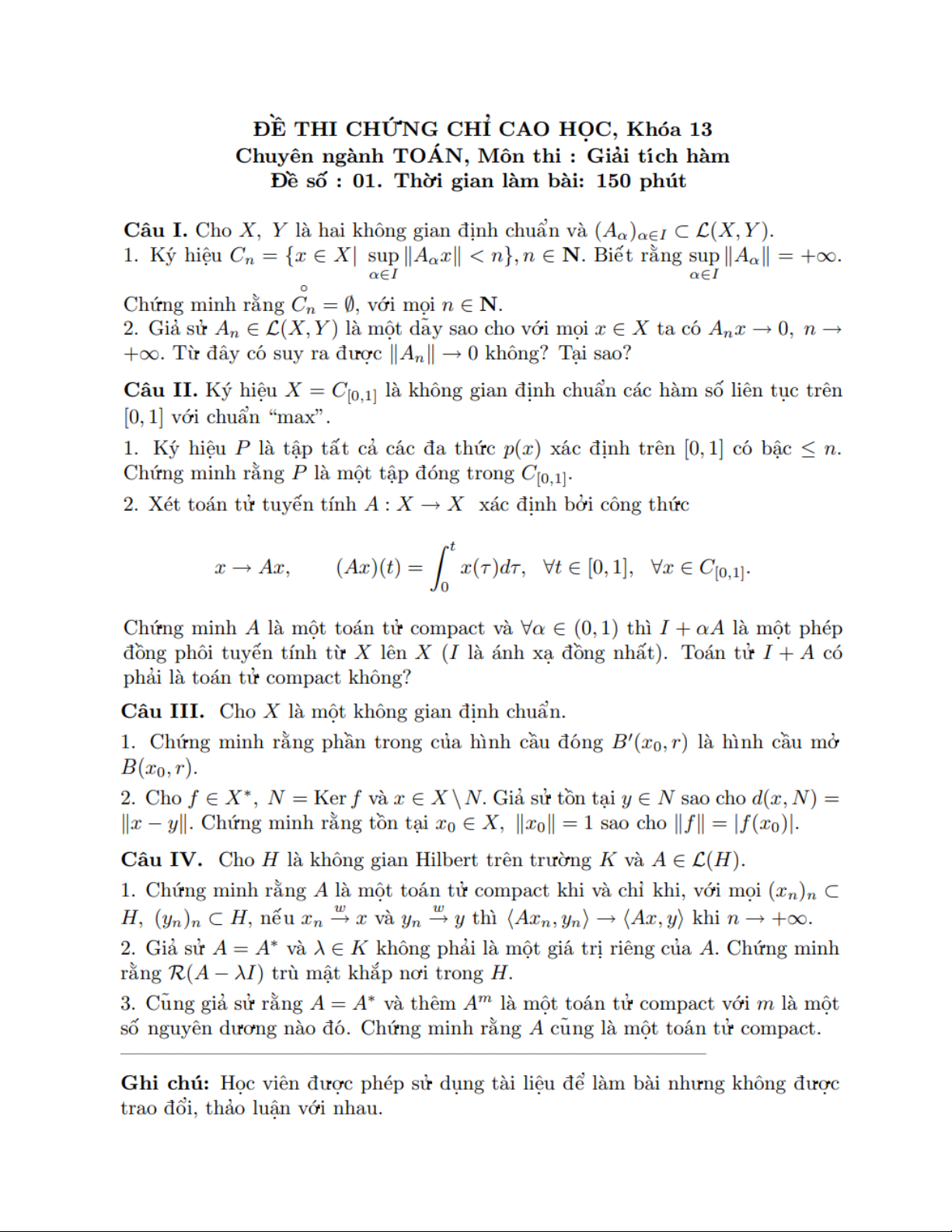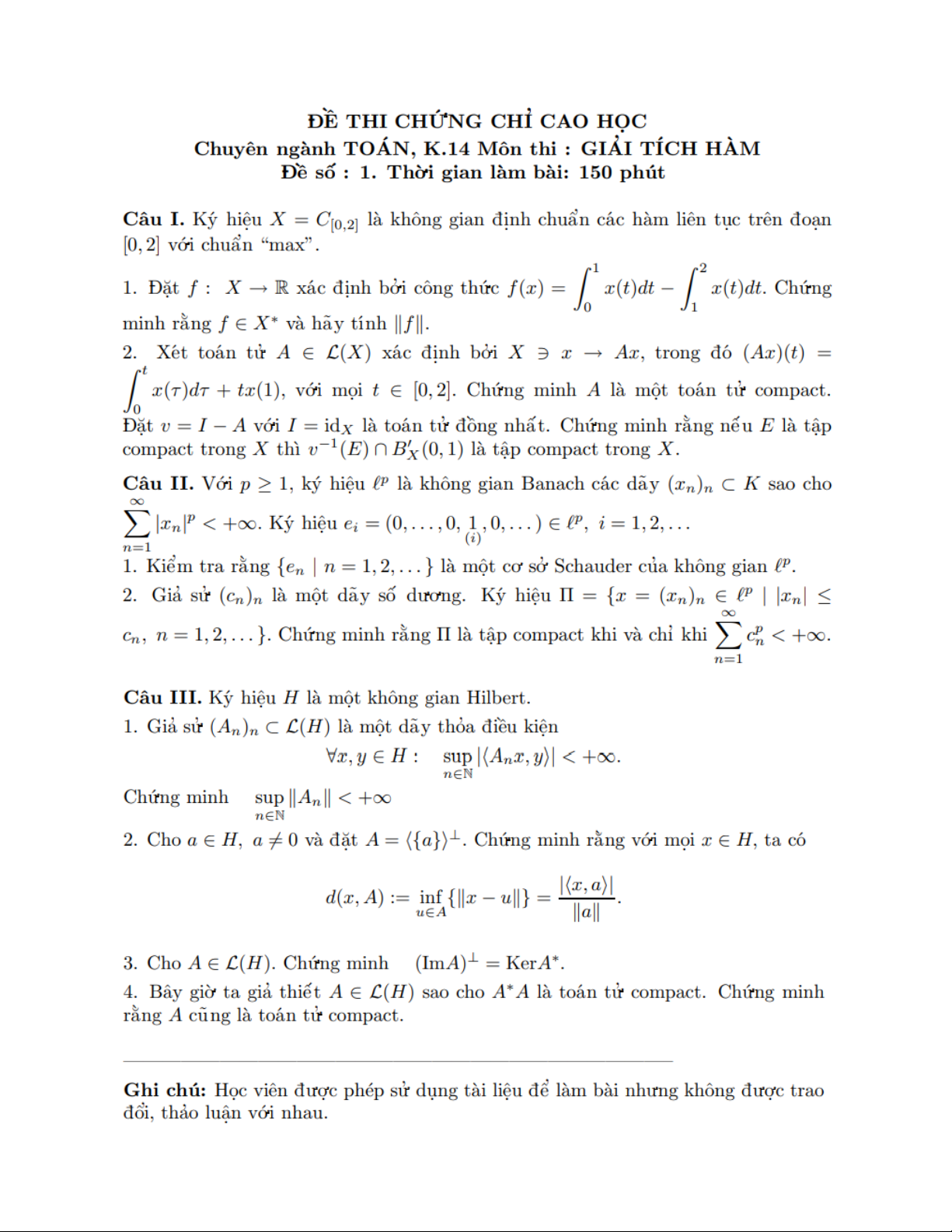 Đề thi Cao học - Giải tích hàm môn Giải tích 2 | Đại học Đồng Tháp
