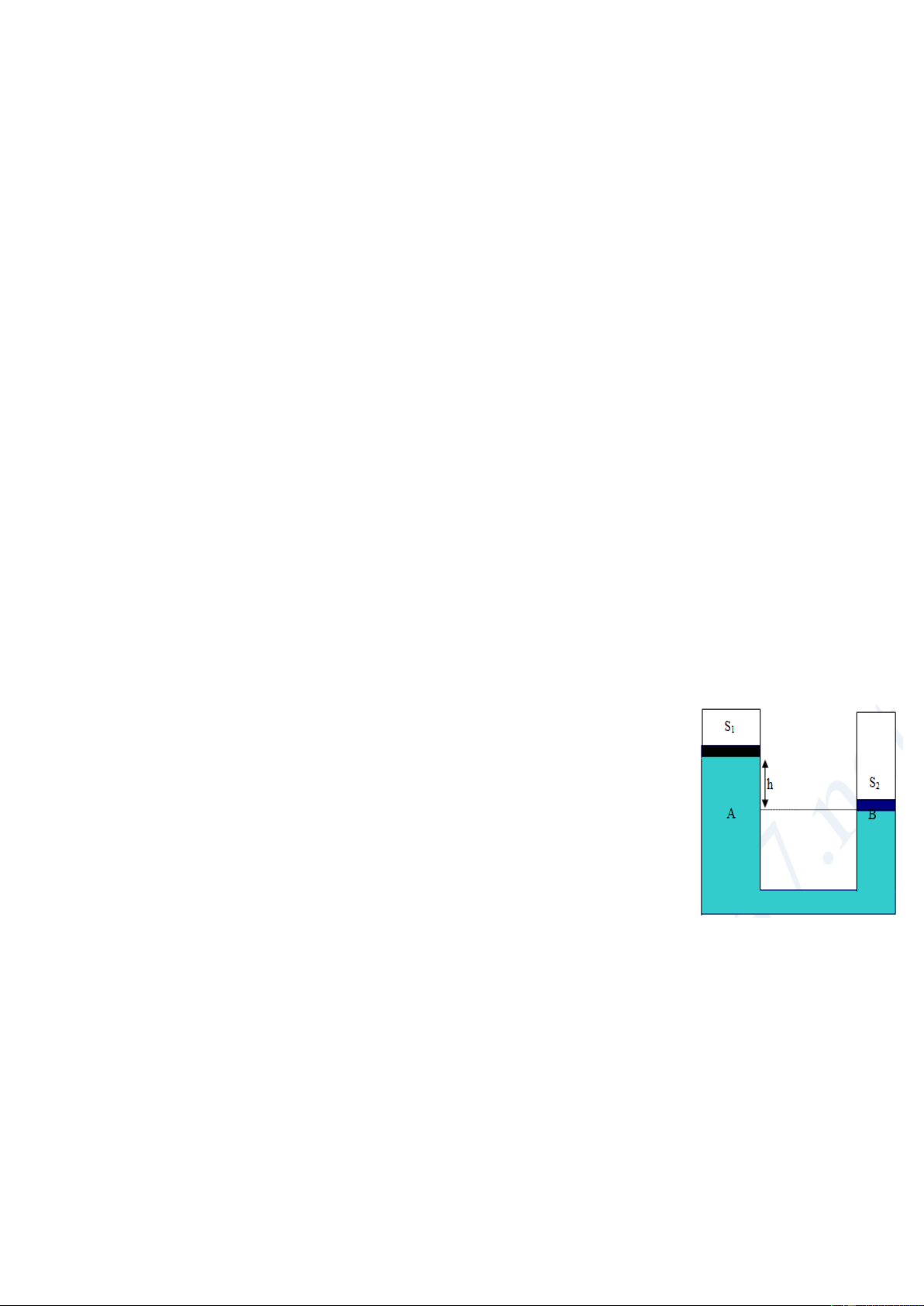 S2 có chứa nước (hình vẽ). Trên mặt nước có đặt các pít tông mỏng, khối lượng m