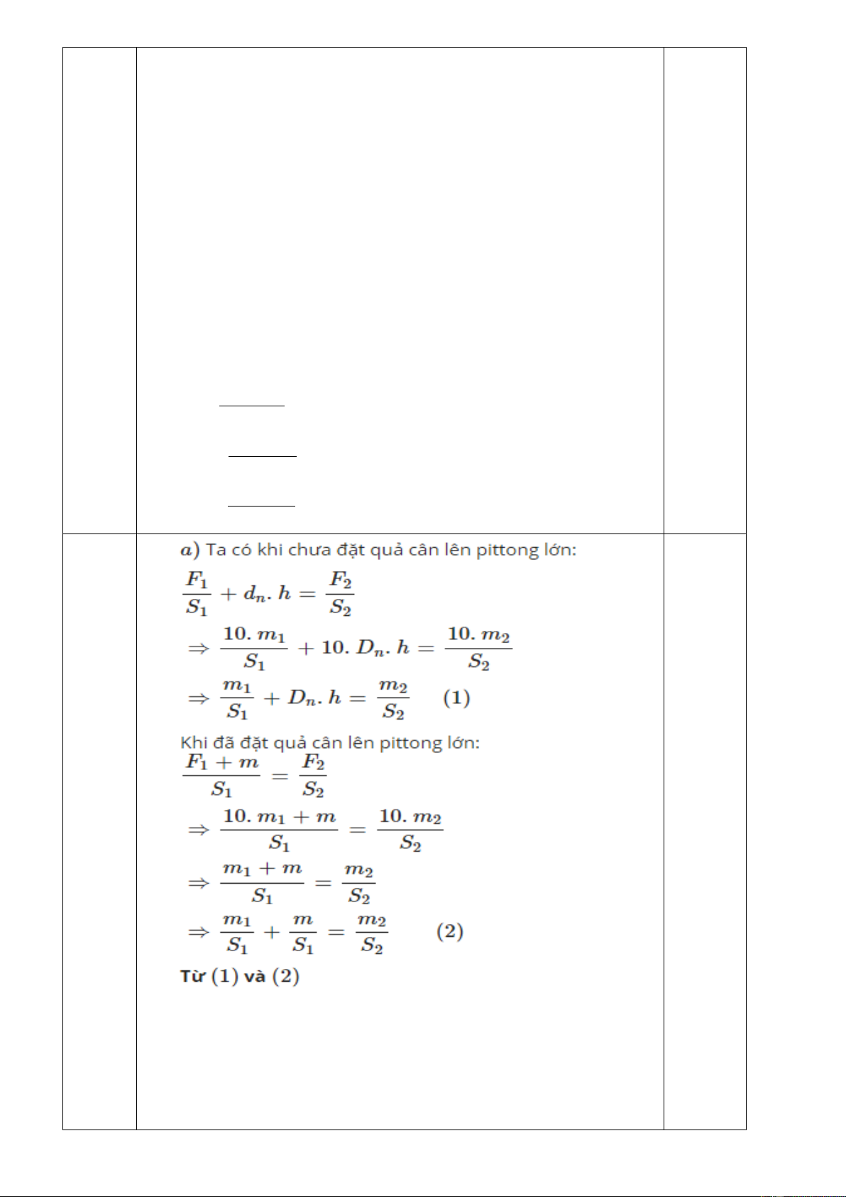 a. Tính khối lượng m của quả cân đặt lên pít tông lớn để mực