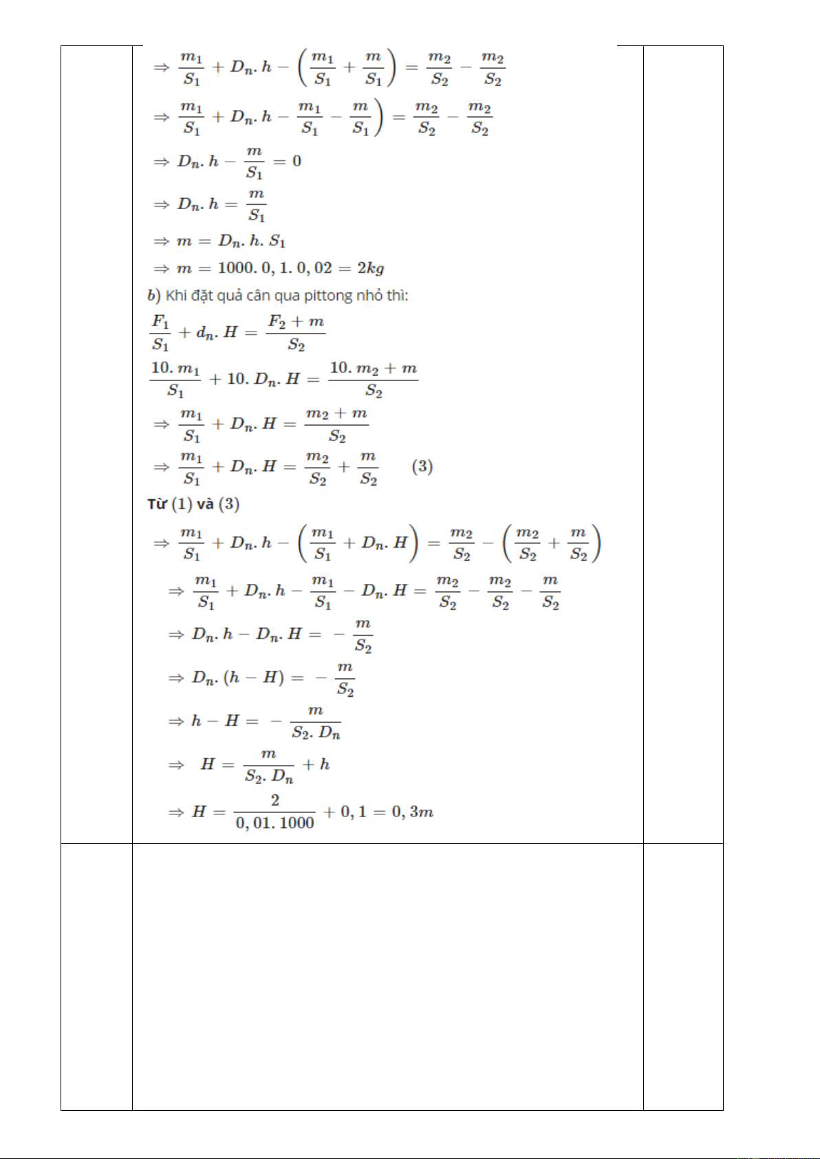 S2 = 100 cm2 và bỏ qua áp suất khí quyển.