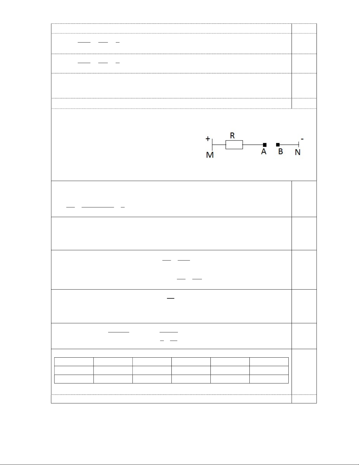 Cường độ dòng điện đi qua R 4 1 là: I1 = I = = = 0,5 A 0,25 R 8 td UMB = I.RMB = 0,5.5 = 2,5V 0,25 U 2,5 1 I MB 2 = = = (A) 0,25 R 7,5 3 2 U 2,5 1 I MB 3 = = = (A) 0,25 R 15 6 3 1. c (0,5 điểm)