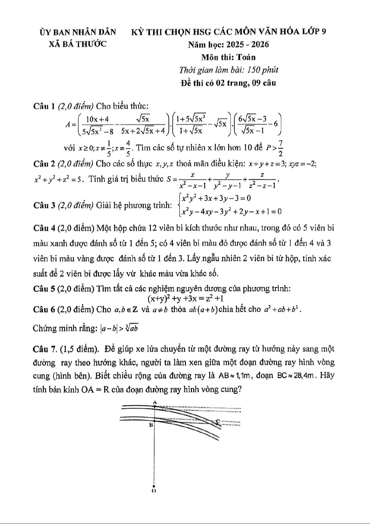 Đề thi chọn học sinh giỏi Toán 9 năm 2025 – 2026 xã Bá Thước – Thanh Hóa