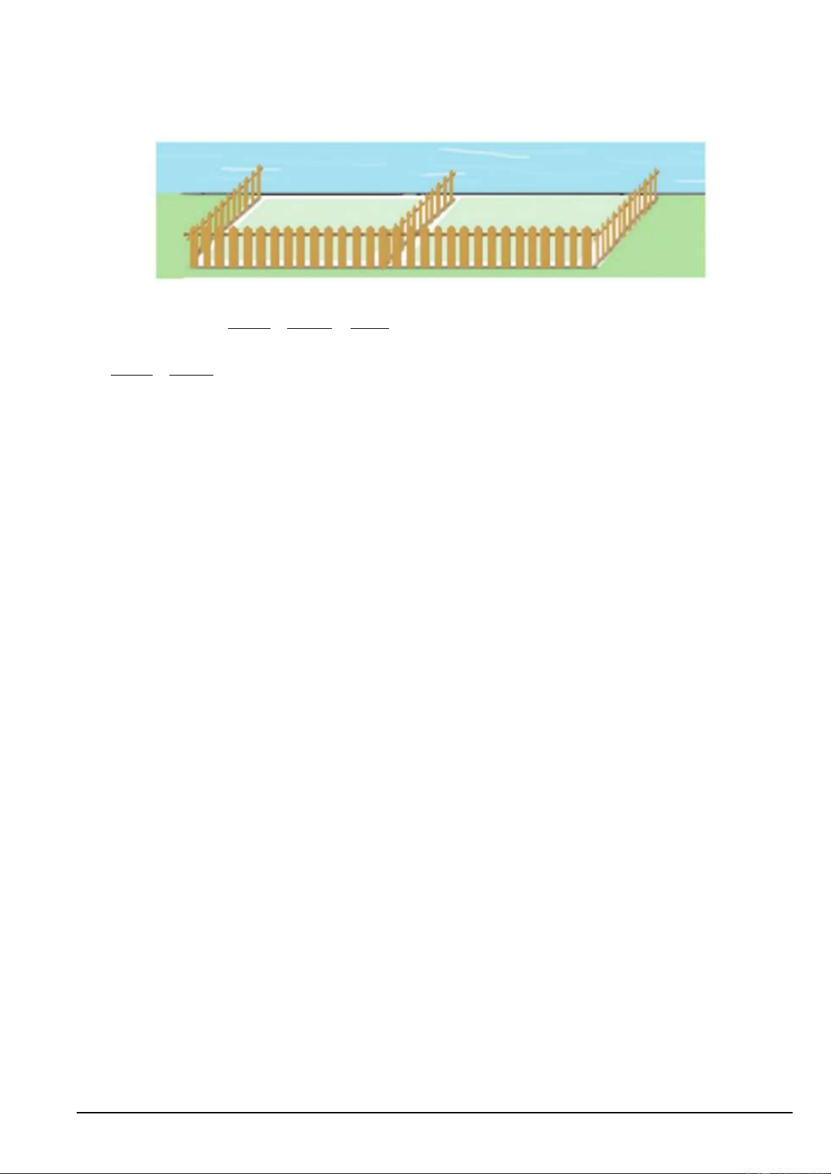 y(m) là chiều dài của mỗi hàng rào vuông góc với bờ sông y > 0 0,25