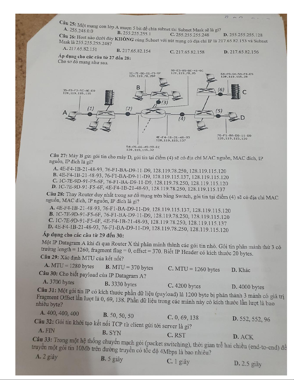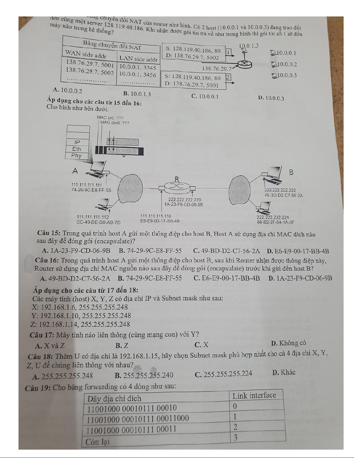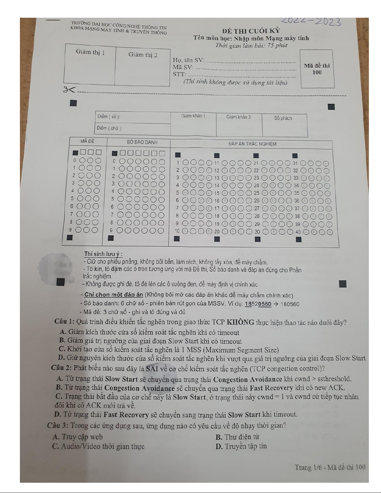 Đề ôn tập nhập môn mạng máy tính UIT 2022-2023