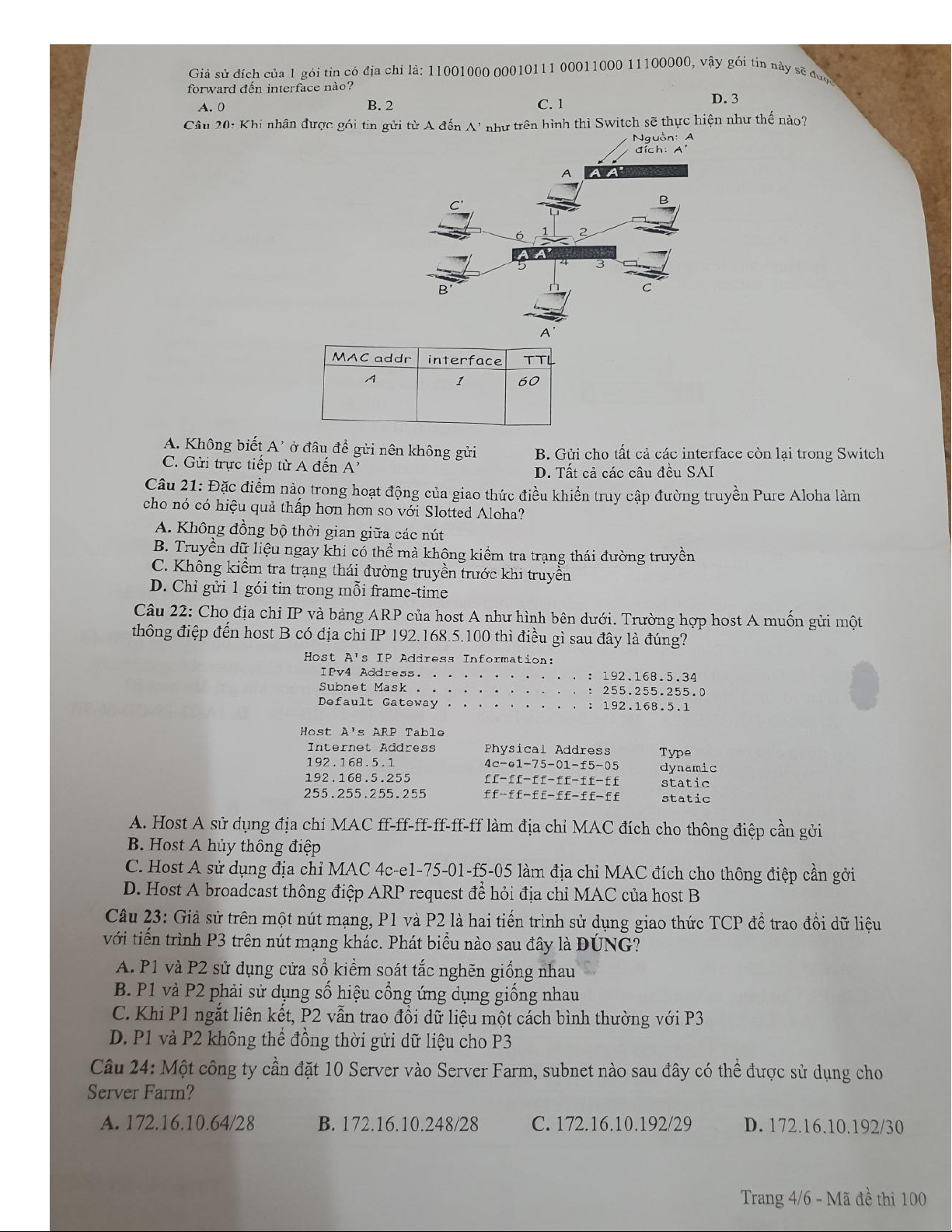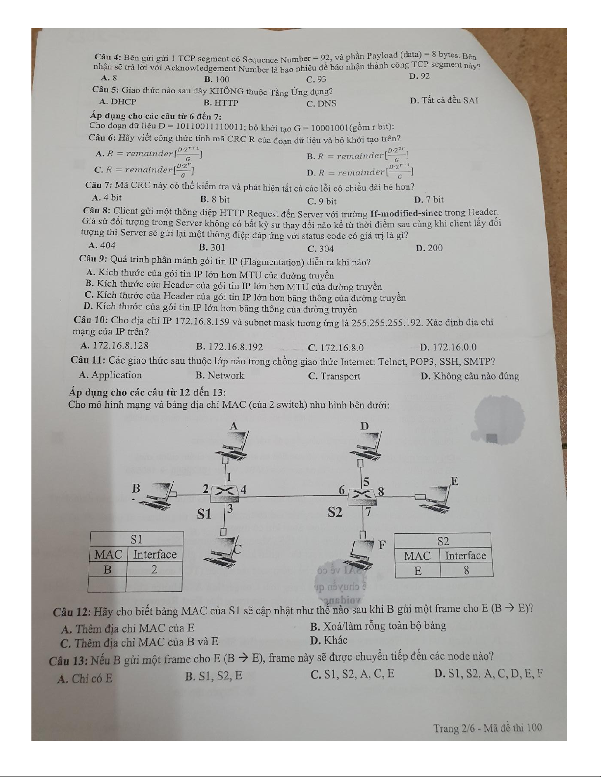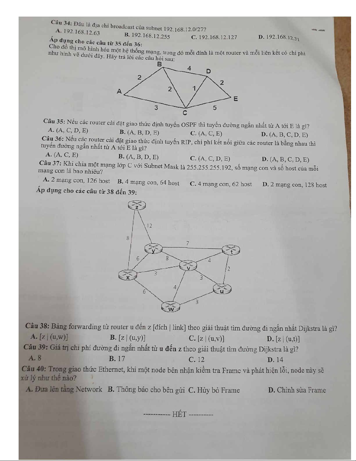 Đề ôn tập nhập môn mạng máy tính UIT 2022-2023