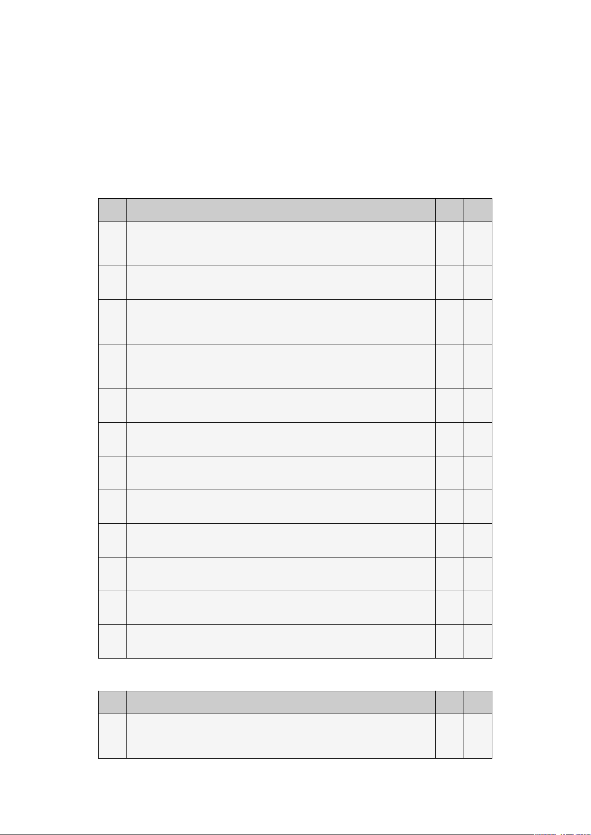 Câu 33: Đánh dấu X vào ô ĐÚNG (Đ) hoặc SAI (S) tương ứng với các nội dung: STT Nội dung Đ S