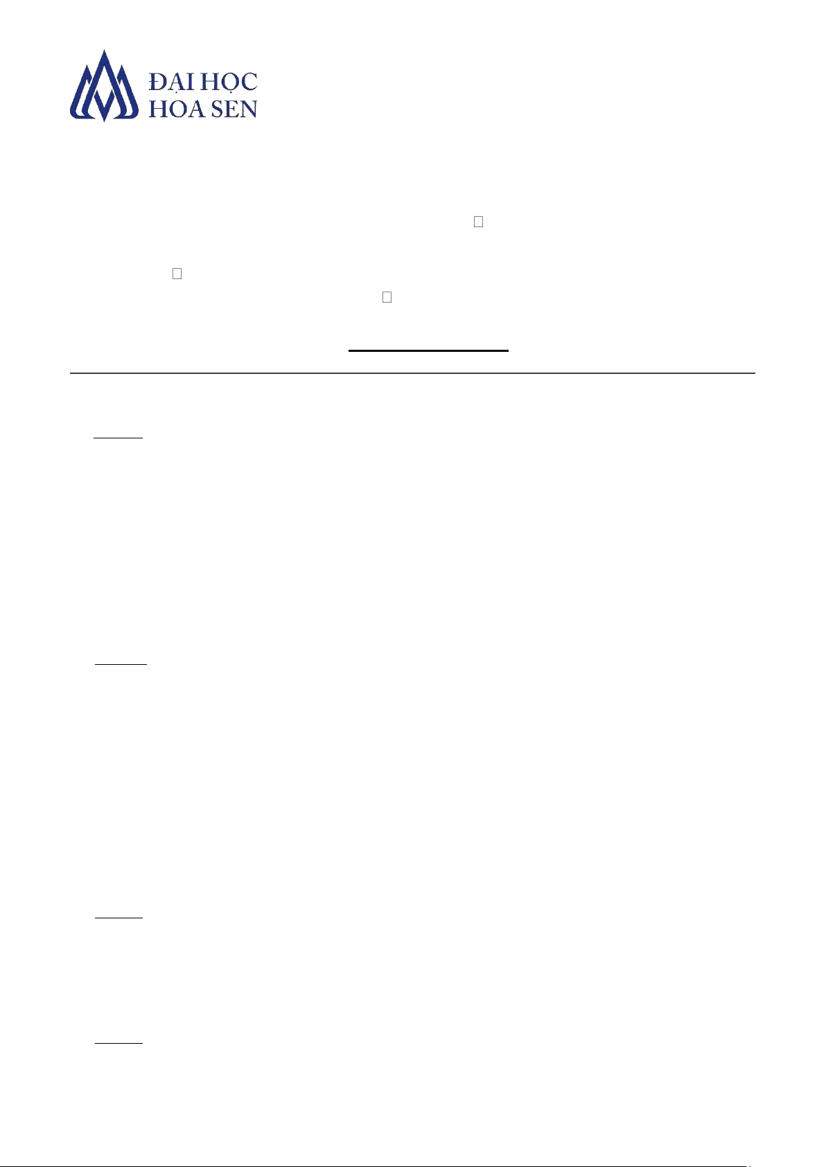 Ghi chú: Sinh viên làm bài trên giấy thi của trường (phần tự luận và trắc nghiệm).
