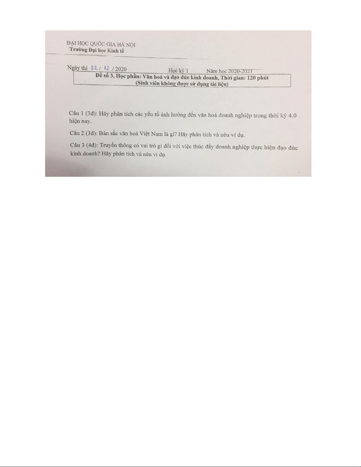 Đề thi cuối kì 1 môn Văn hóa và đạo đức trong kinh doanh năm học 2025-2026 - trường đại học Kinh tế- Đại học Quốc Gia Hà Nội