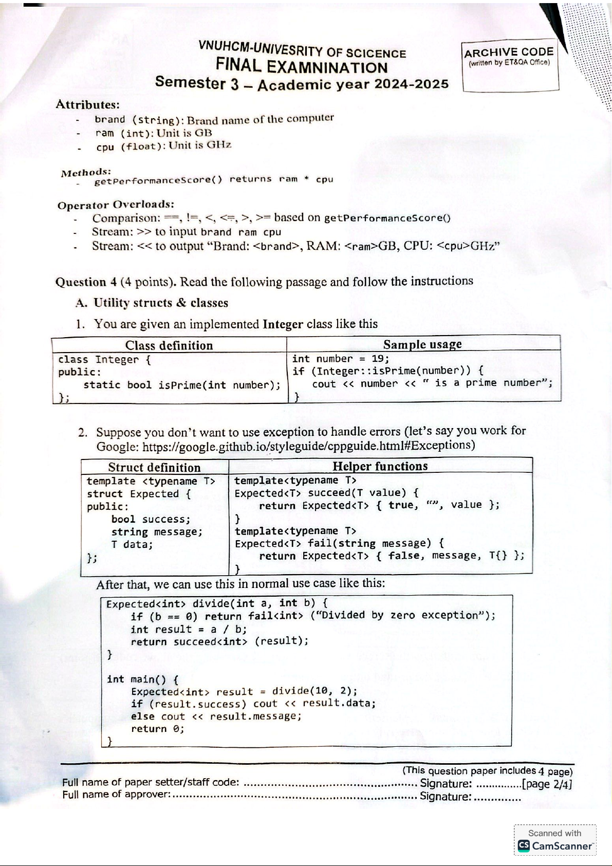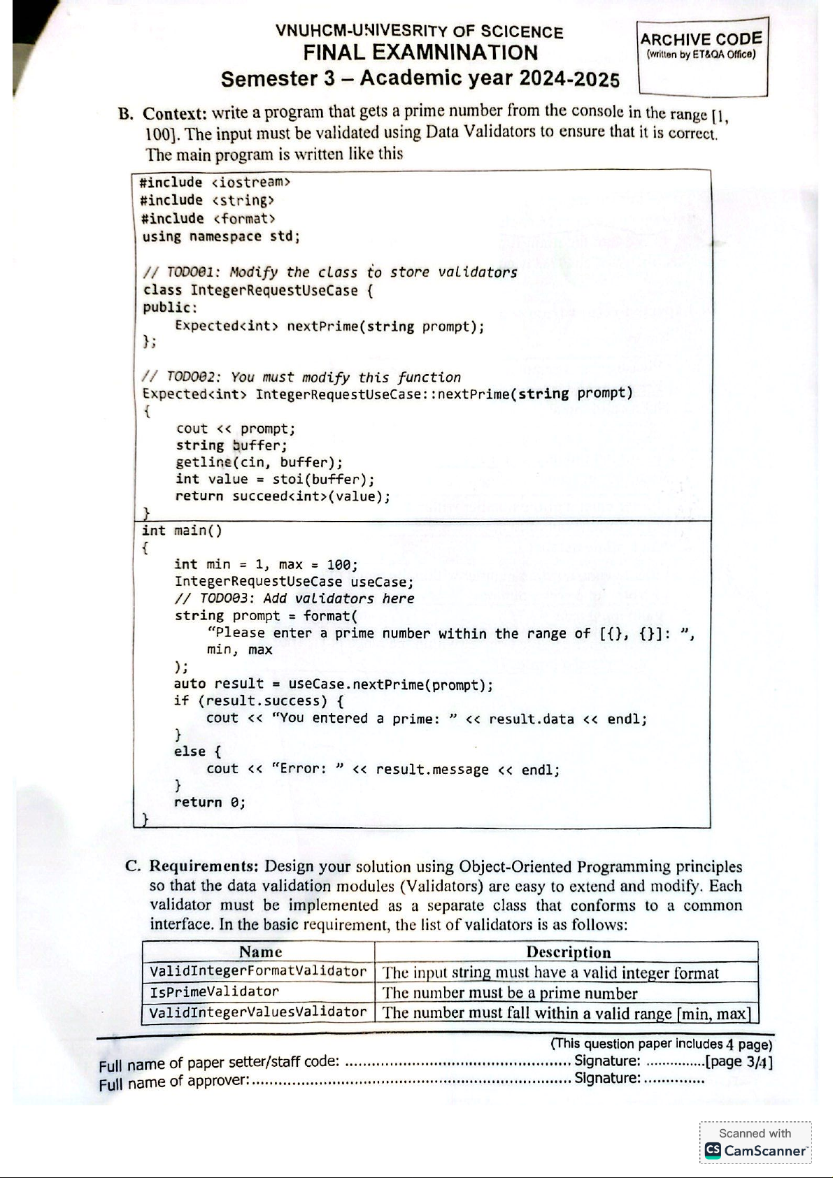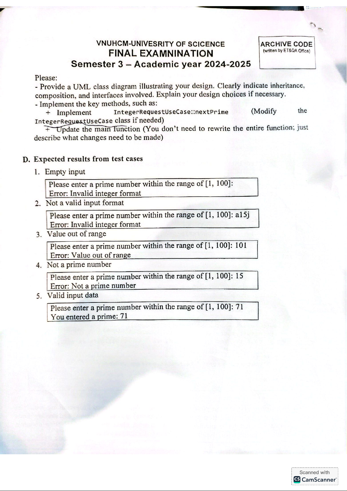 Đề thi cuối kì 2024-2025 môn Lập trình hướng đối tượng | Trường Đại học Khoa học tự nhiên, Đại học Quốc gia Thành phố Hồ Chí Minh