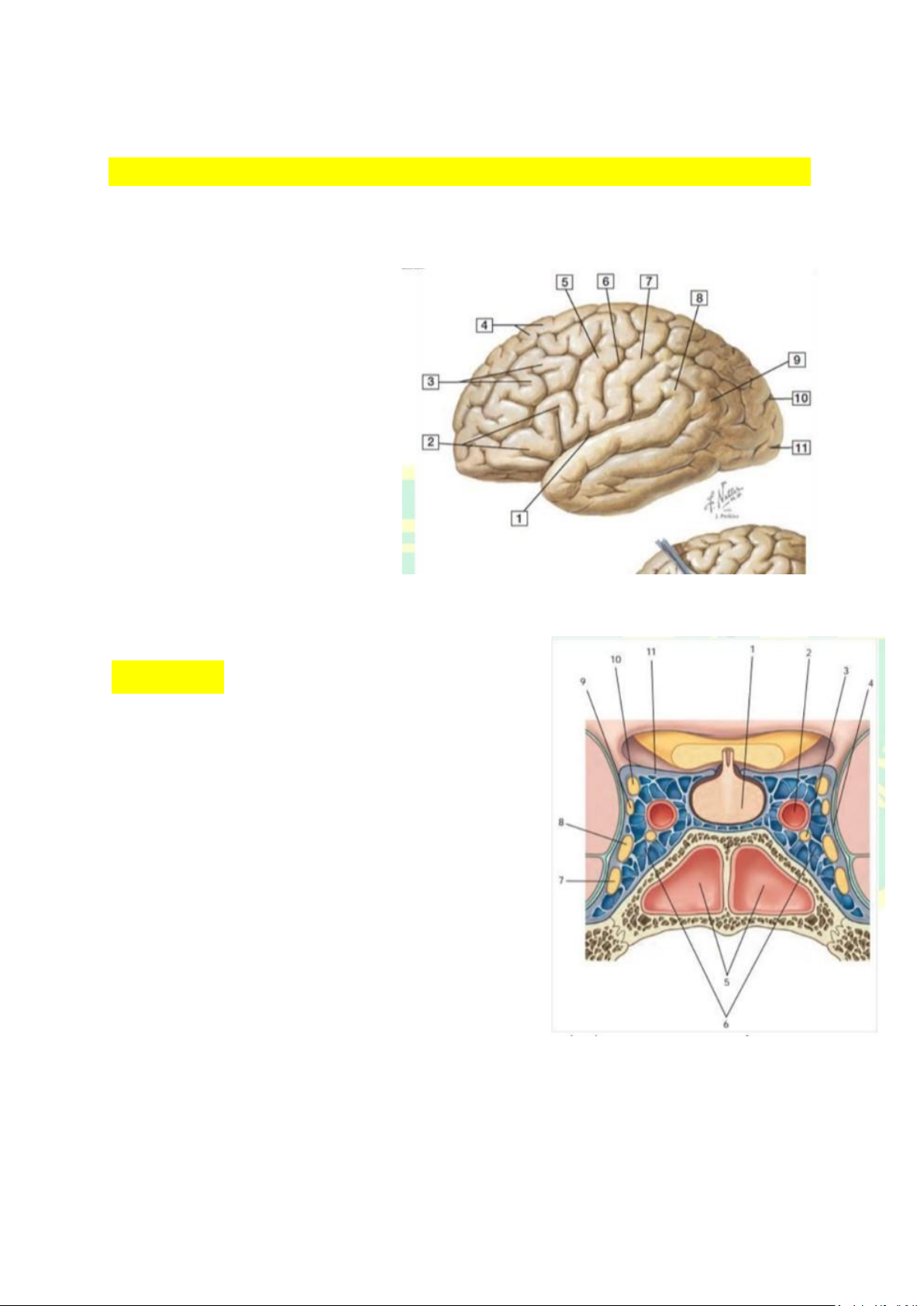 2. Nhánh trước và nhánh lên thuộc rãnh bên Sylvius 3. Hồi trán giữa 4. Hồi trán trên 5. Hồi trước trung tâm 6. Rãnh trung tâm (Rolando) 7. Hồi sau trung tâm 8. Hồi trên viền 9. Hồi góc 10. Rãnh đỉnh chẩm 11. Rãnh cựa 1. Tuyến yên Câu