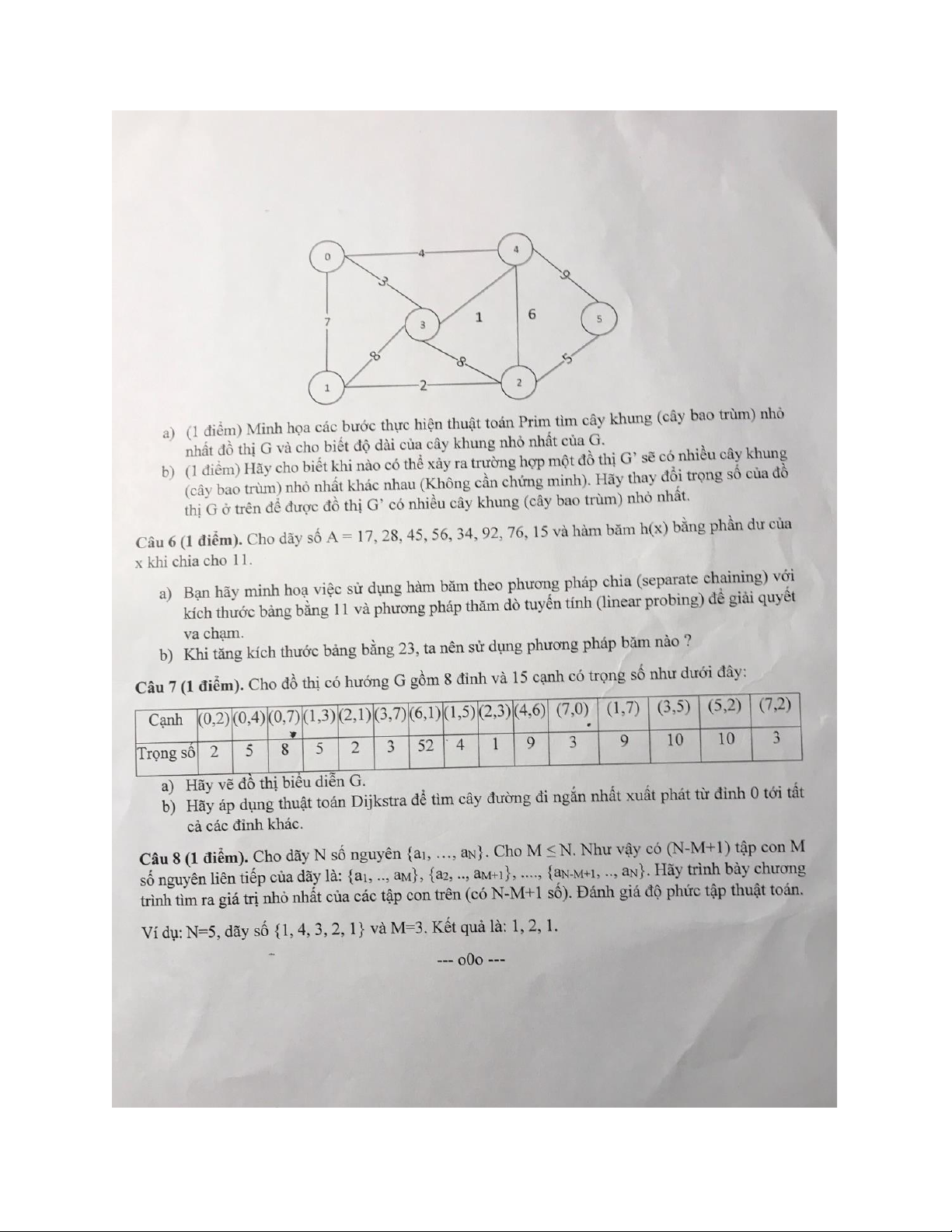 Đề thi cuối kì môn Cấu trúc dự liệu và giải thuật năm học 2025-2026 - trường đại học công nghệ - đại học quốc gia Hà Nội.