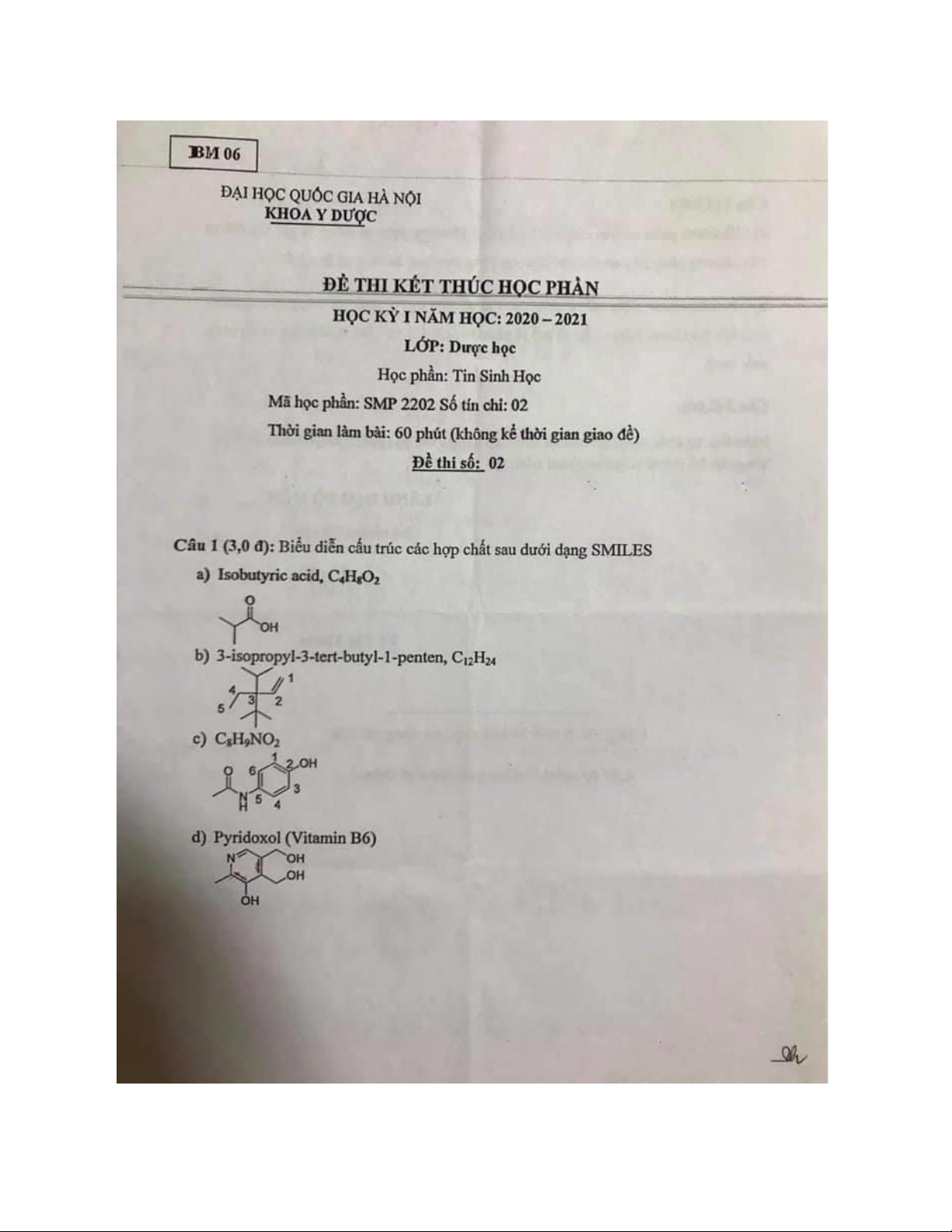 Đề thi cuối kì môn Dược học năm học 2025-2026 - trường đại học y dược- đại học quốc gia hà nội.