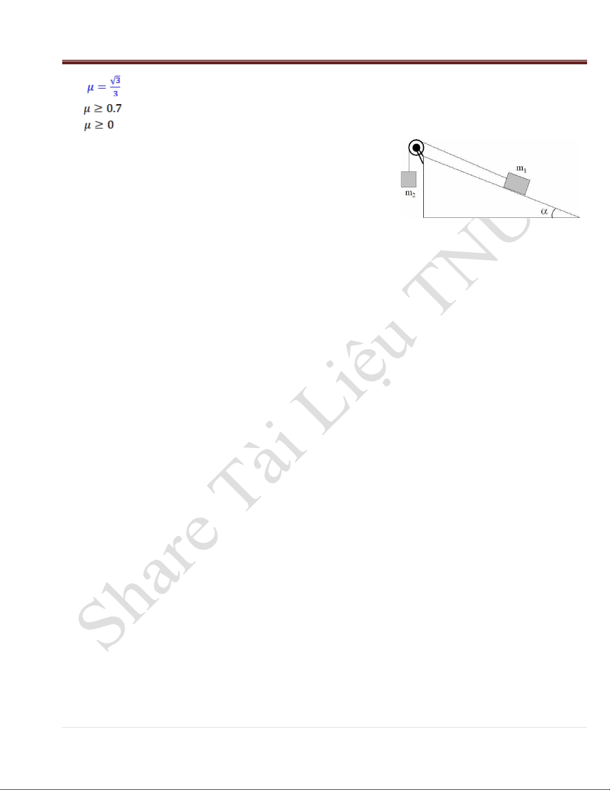 m/s2. Lực căng dây treo vật m2 là: a) T2 = 15,6 N b) T2 = 14 N 17 | P a g e c) T2 = 6 N d) T2 = 16,5 N