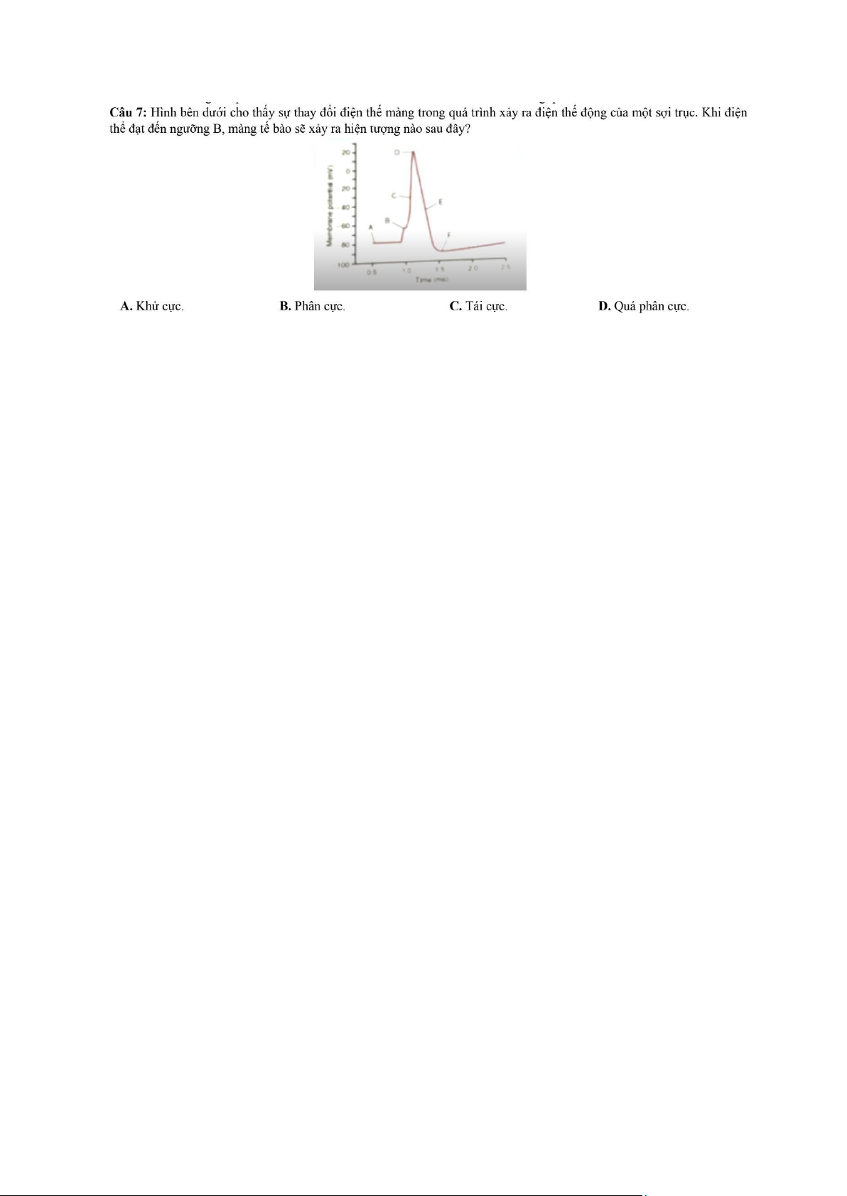 Câu 3: cho hình hỏi pha 0 của điện thế động đáp ứng nhanh ? -> Kênh Na nhanh cho Na+ đi vào