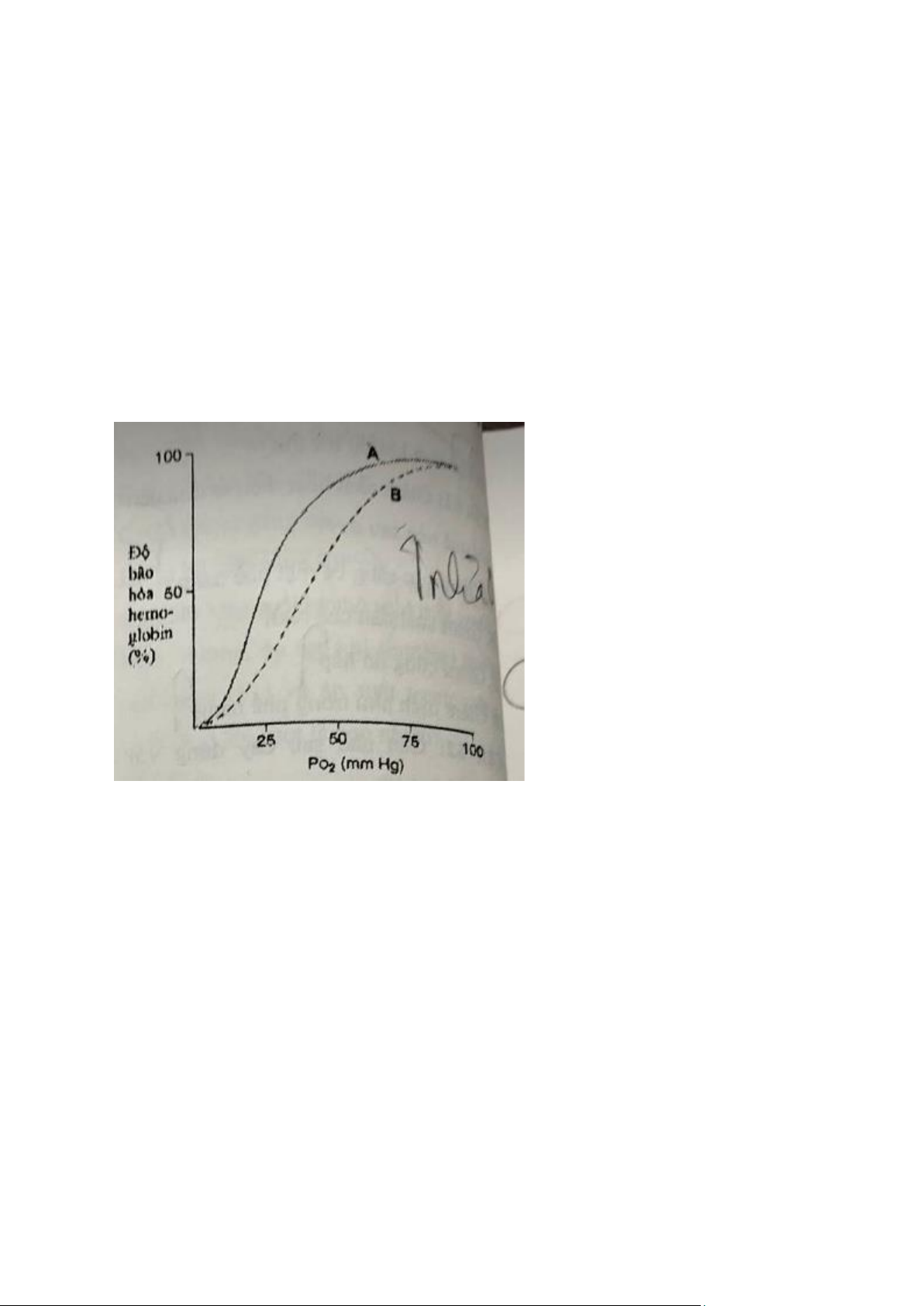 Câu 54: Đường cong dịch chuyển từ A sang B khi nào A. pH giảm B. Thân nhiệt giảm C. CO2 giảm D. 2,3-DPG giảm Câu 55: