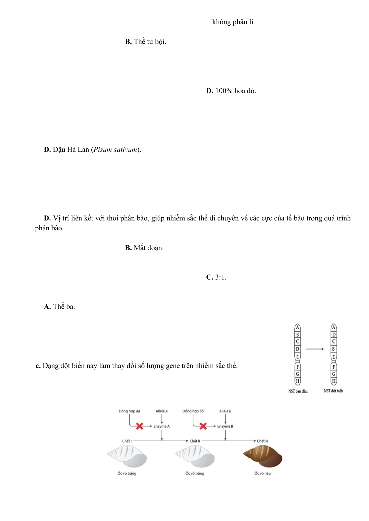 Câu 18. Dạng đột biến nhiễm sắc thể nào sau đây làm thay đổi cấu trúc của nhiễm sắc thể?
