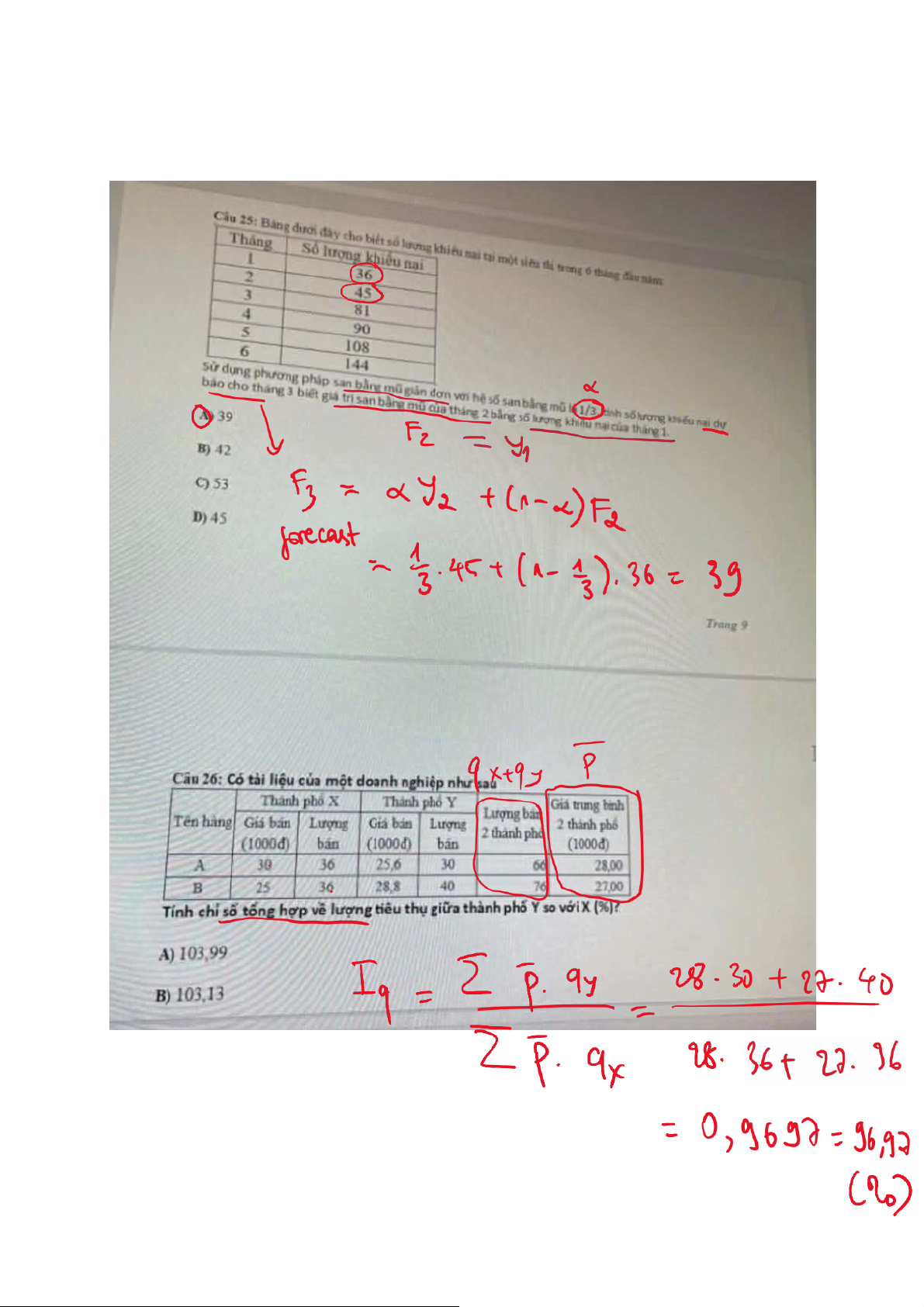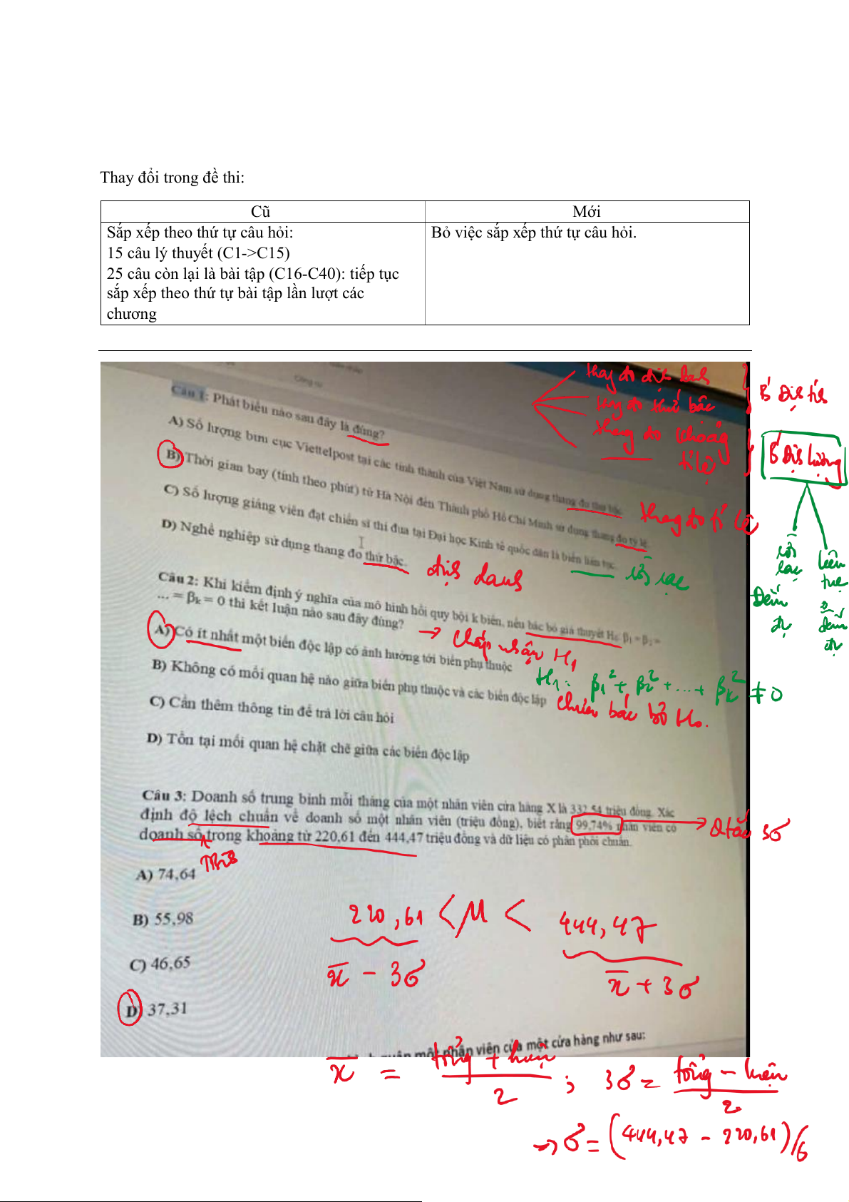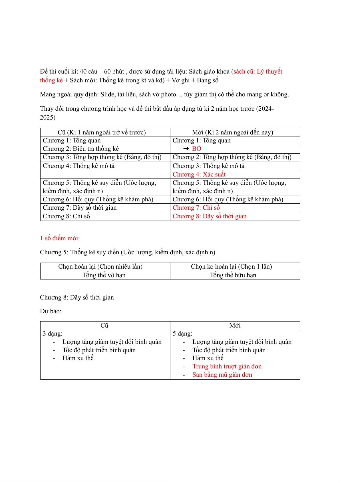 - Trung bình trượt giản đơn - San bằng mũ giản đơn Thay đổi trong đề thi: Cũ Mới