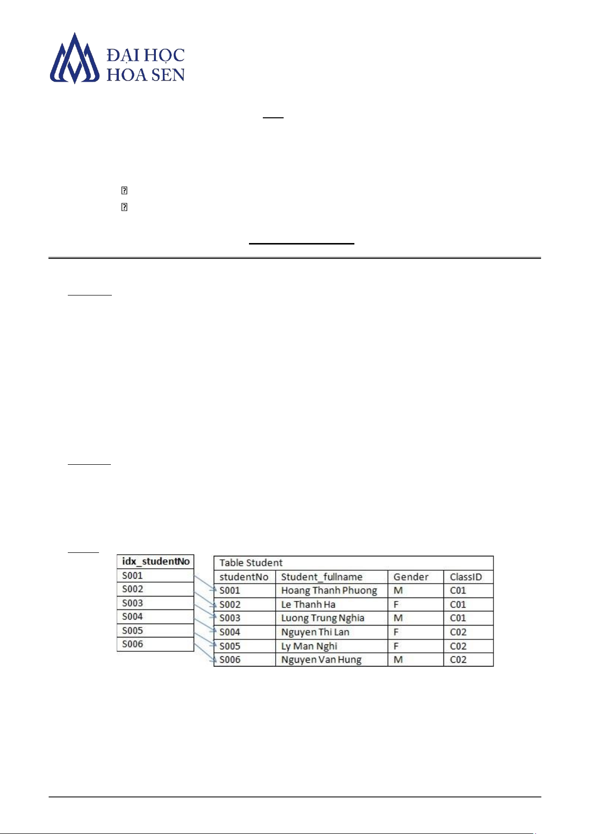 Câu 3: Index idx_studentNo sau thuộc dạng nào    a. Dense index  b. Sparse index  c. Cả a và b đều đúng  d. Cả a và b đều sai    Thi CK – Hệ QT C SD L  Trang 1 / 7      lOMoAR cPSD| 47206071
