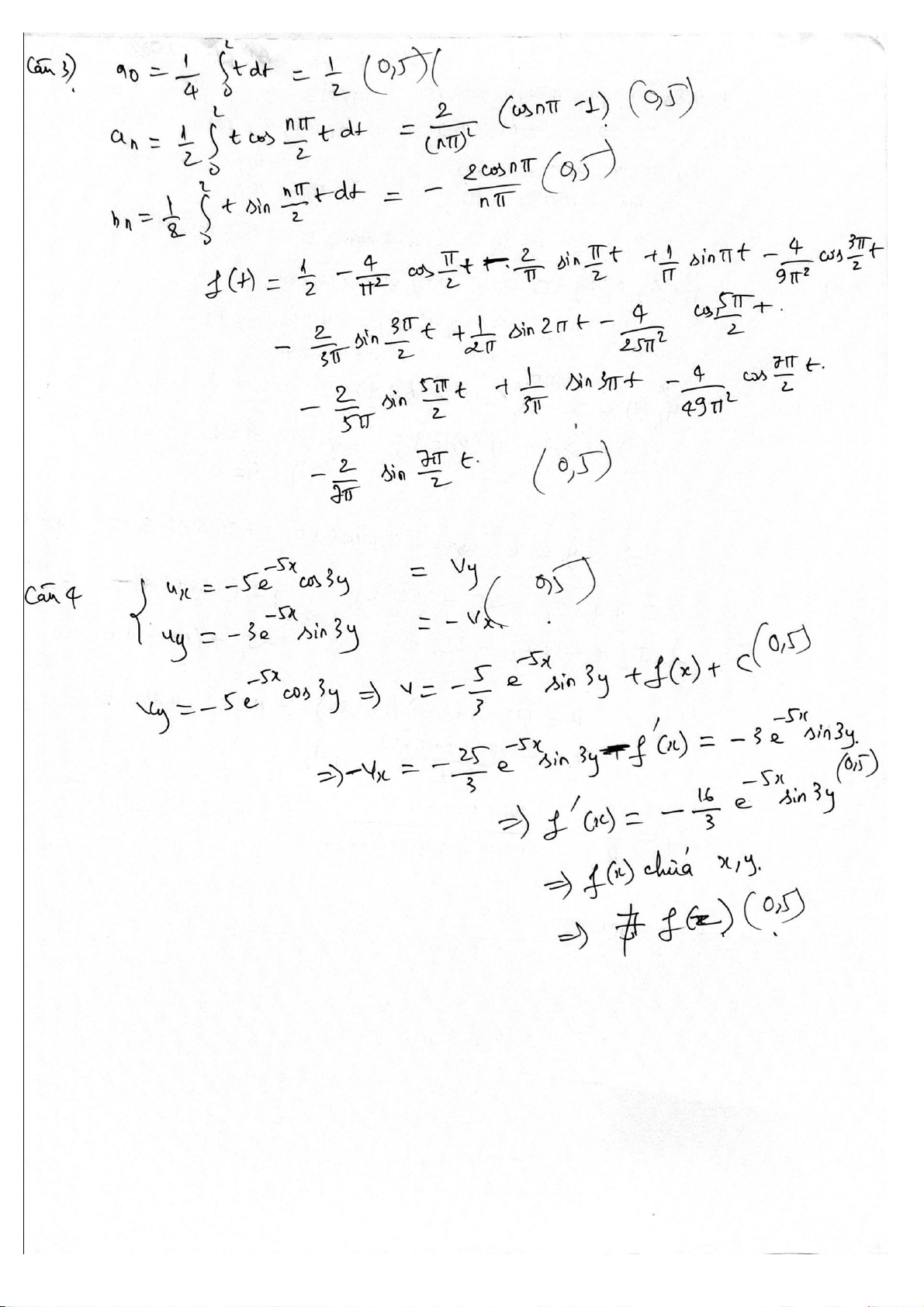 0,5 0,5e0,5t cos1,5t 4e0,5t sin1,5t (0,25đ)