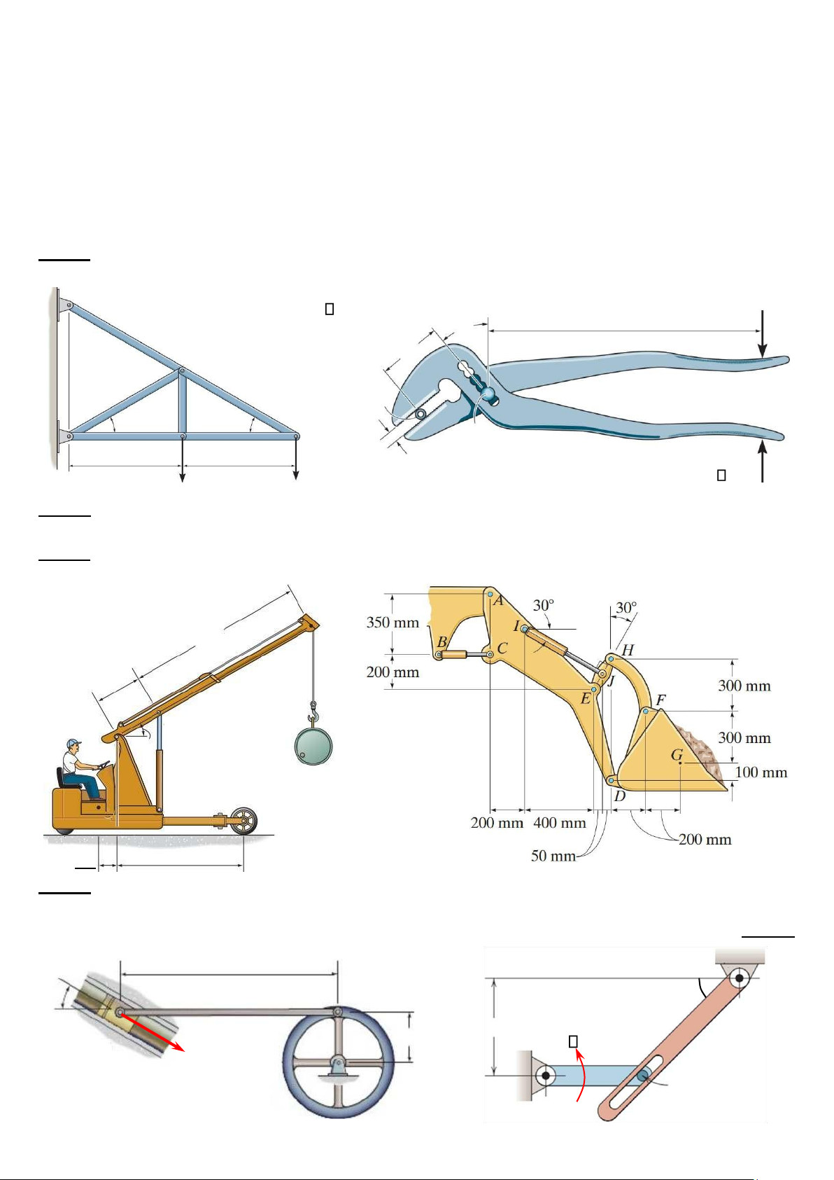Câu 2: (2,0 iểm) Xác ịnh lực kẹp tác dụng lên khối trụ B và phản lực tại khớp xoay A của kìm chịu lực như hình 2.