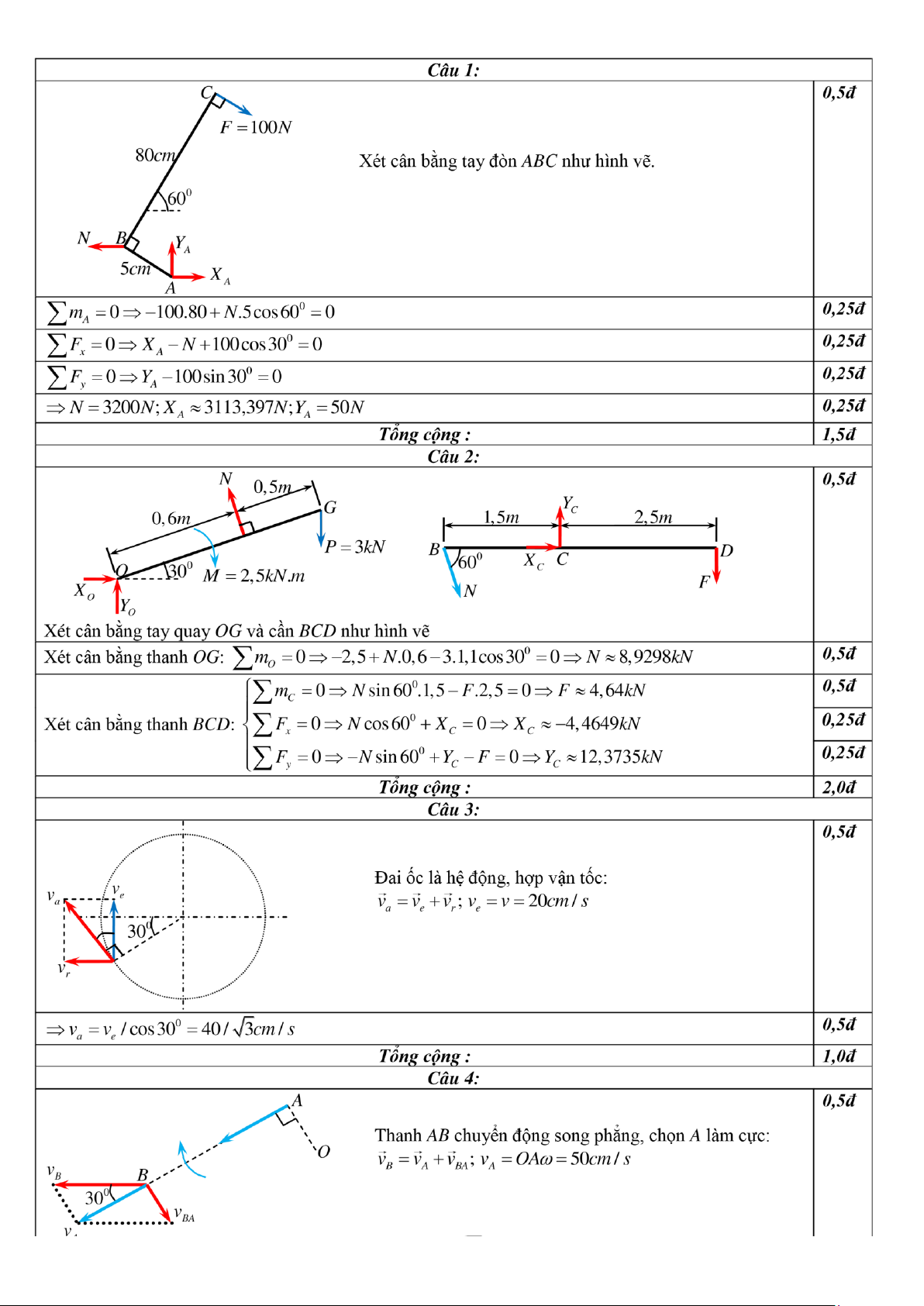 Tổng cộng : Câu 2: P 80N A Y F 25cm