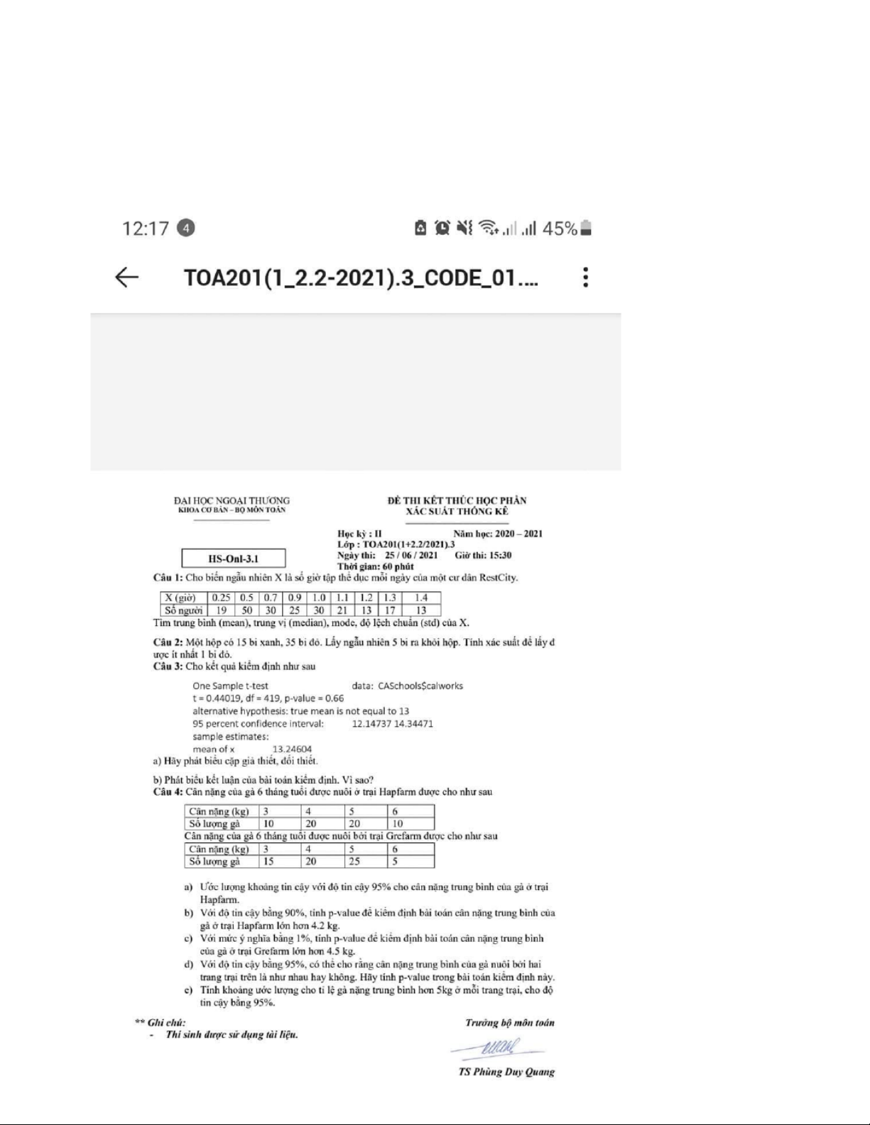 Đề Thi Xác Suất Thống Kê - Thầy Lâm Sơn P1 (Các Năm Trước) - Studocu