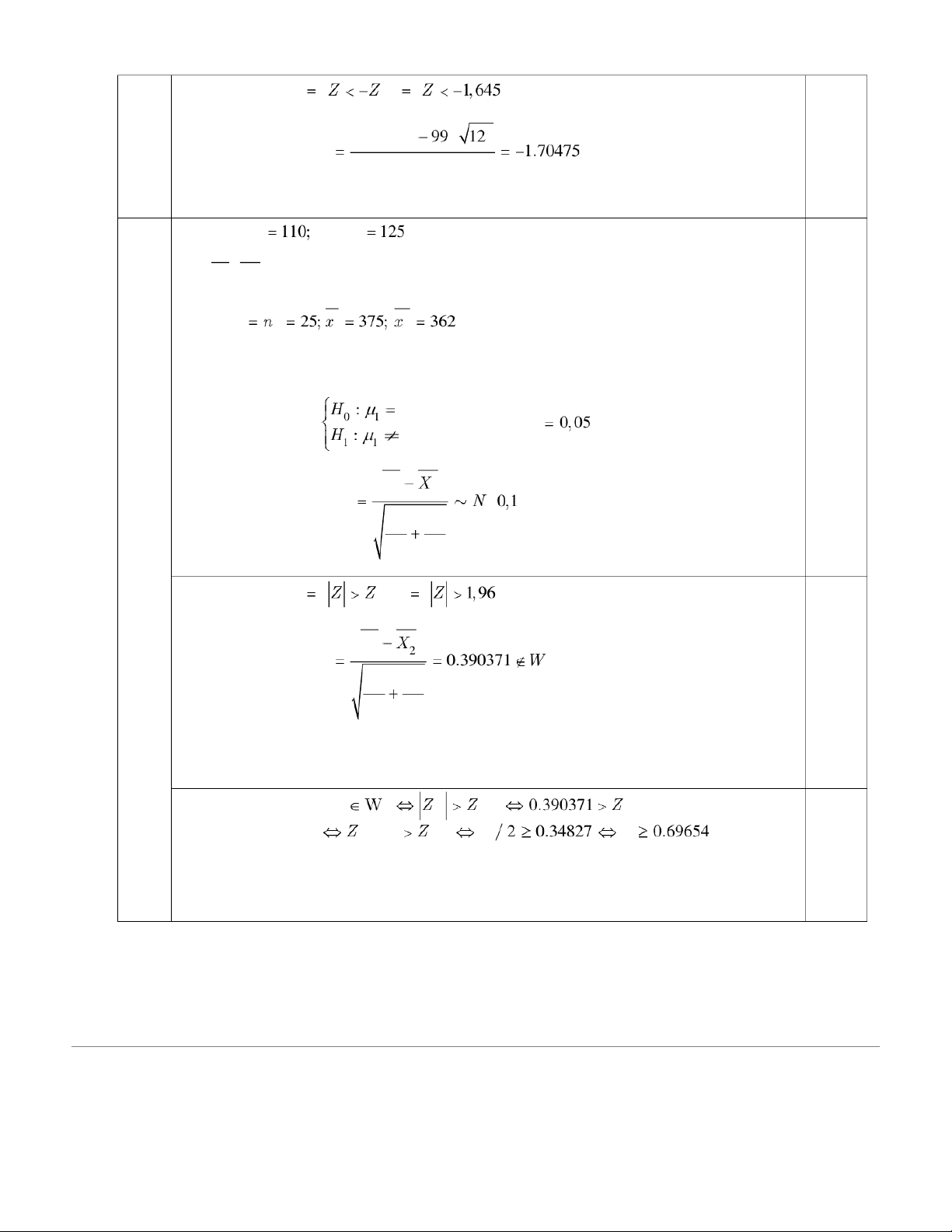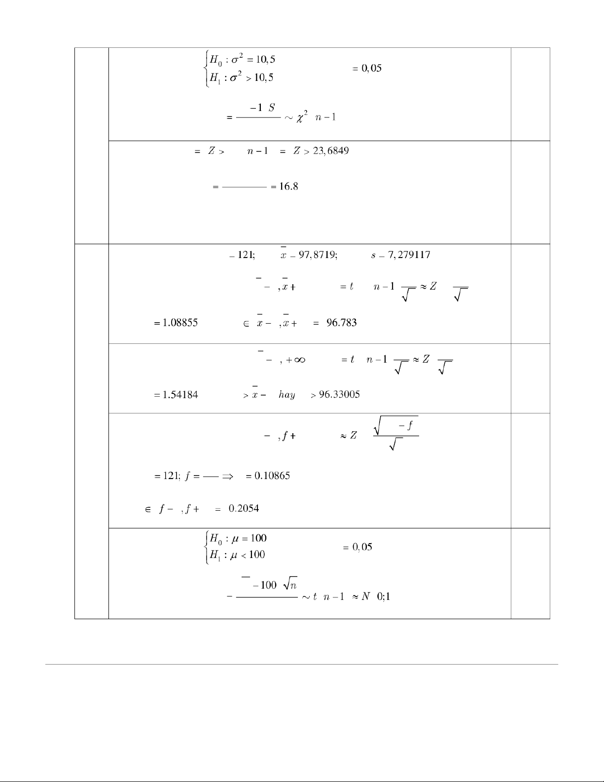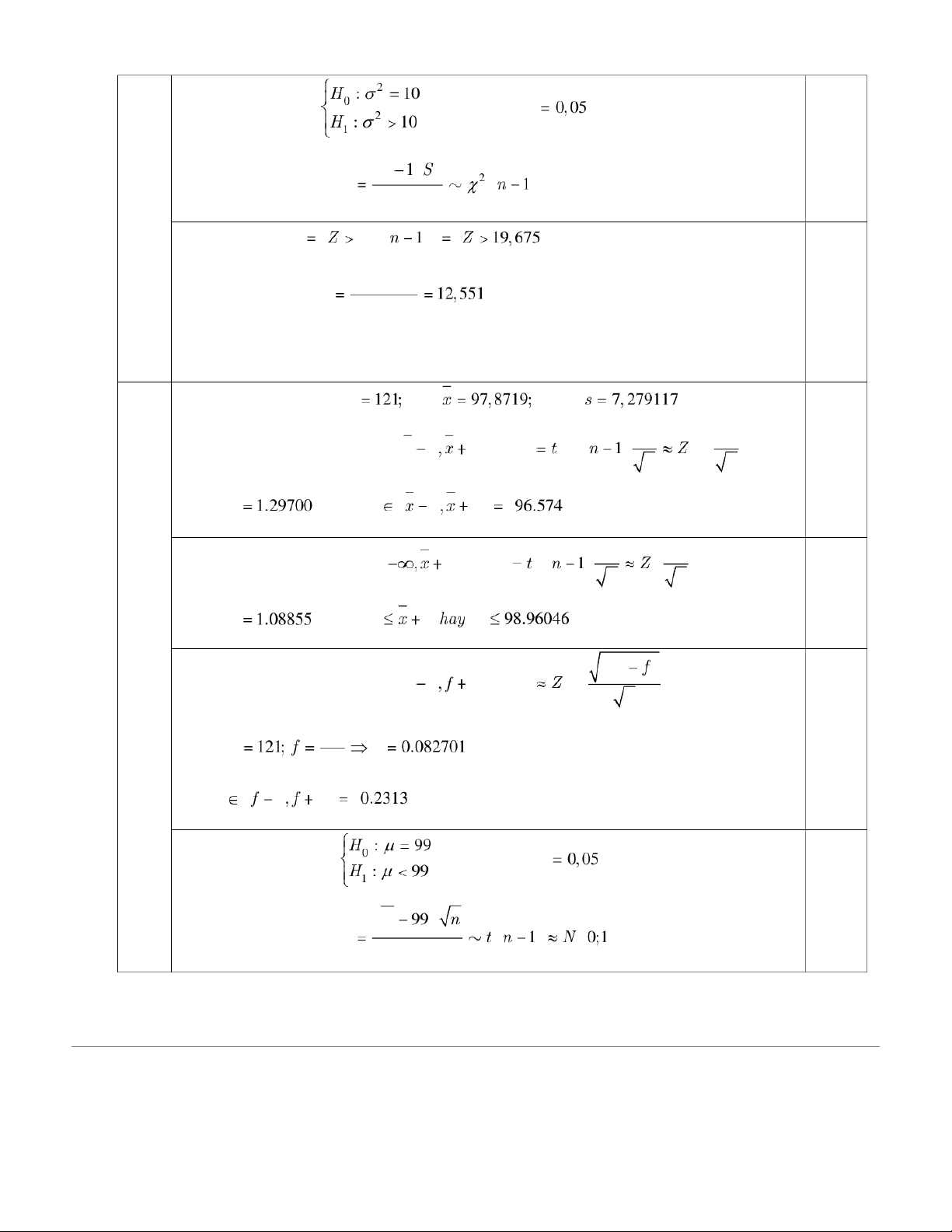 Vậy bác bỏ H0, điều nghi ngờ trên chấp nhận được ở mức ý nghĩa 5%. 6 a) Ta có: 0,5 1 2