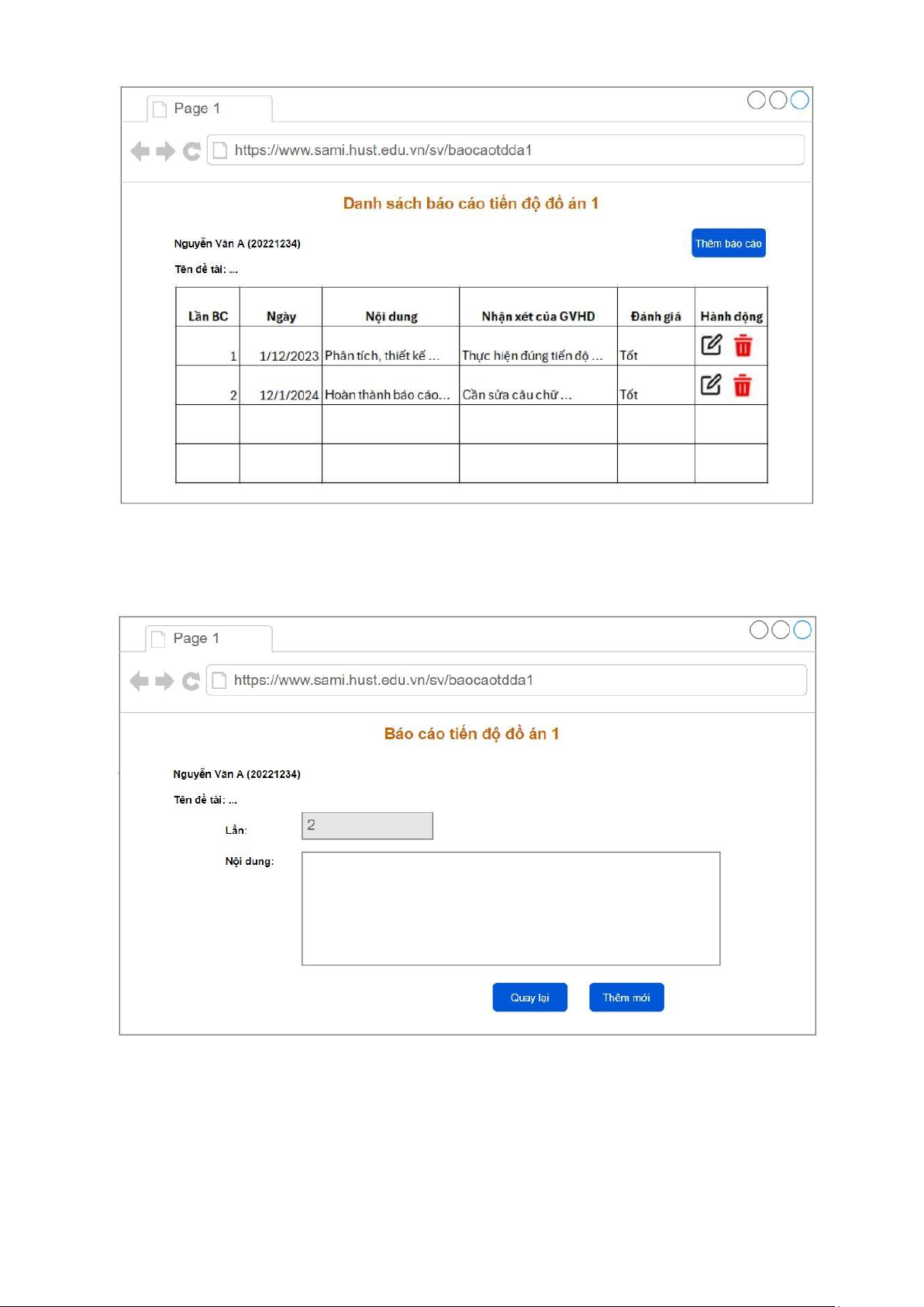 - Báo cáo tiến ộ thực hiện ồ án của sinh viên + Danh sách các báo cáo:
