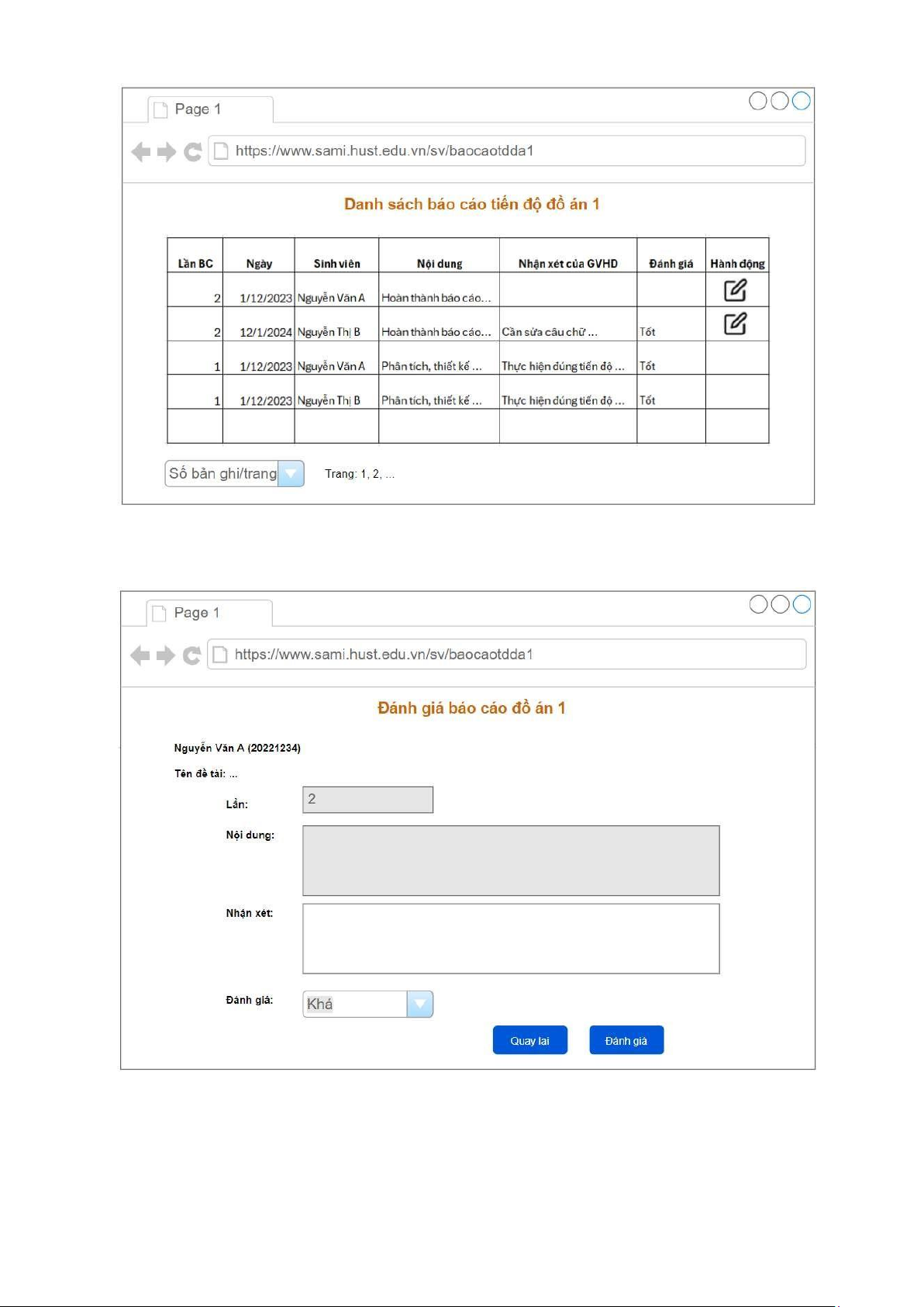 - Nhận xét, ánh giá báo cáo tiến ộ (Giáo viên) + Danh sách các báo cáo: