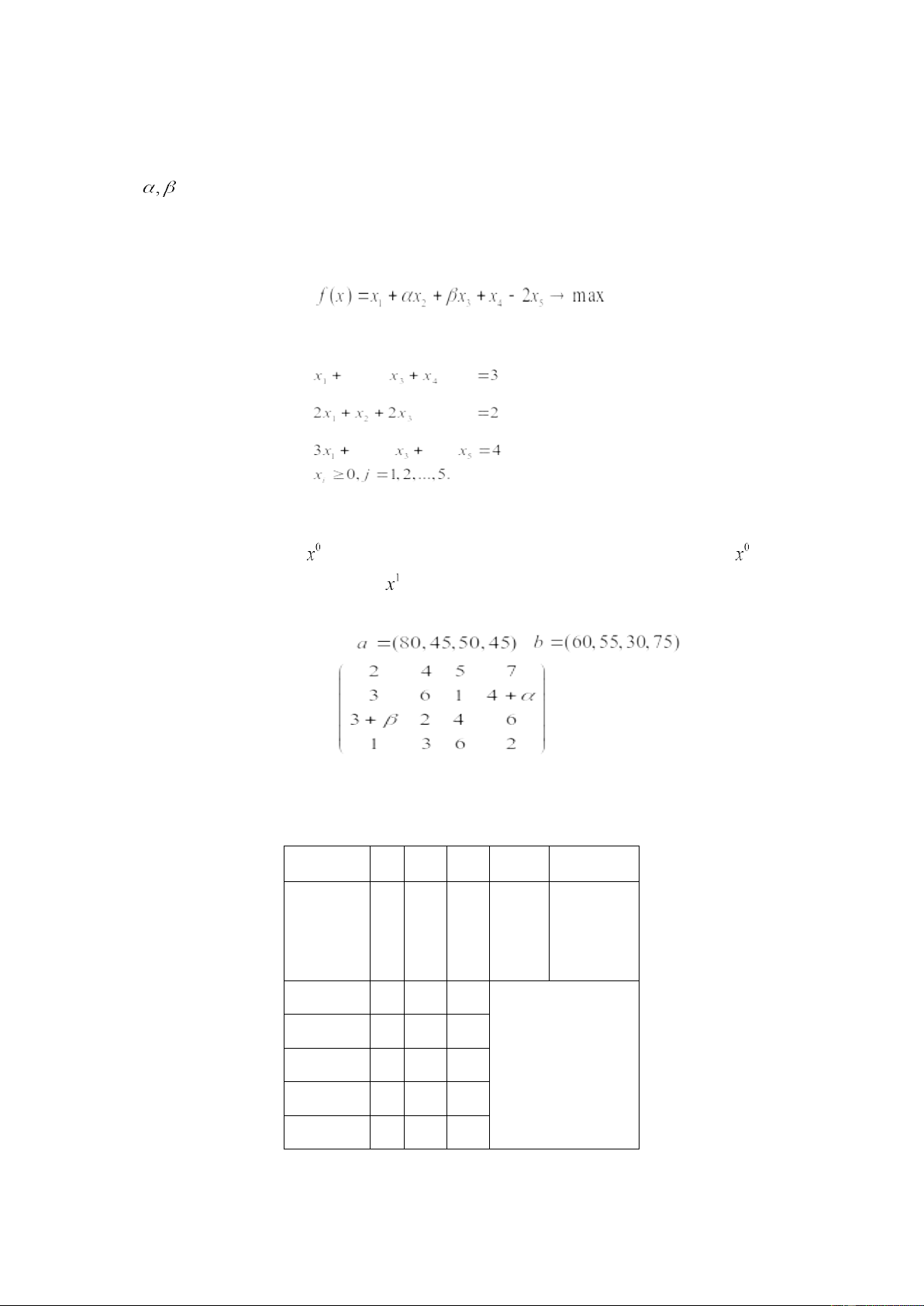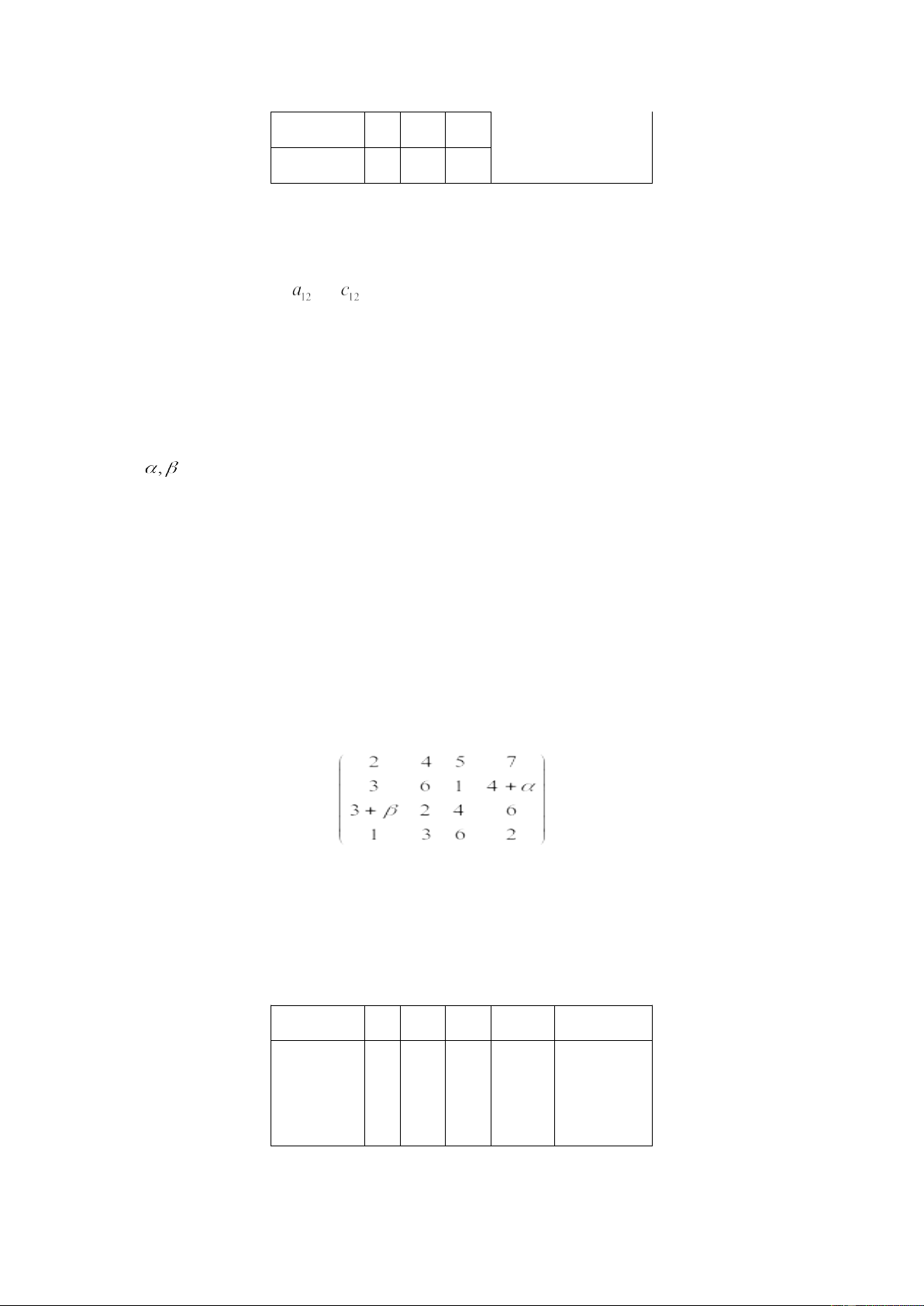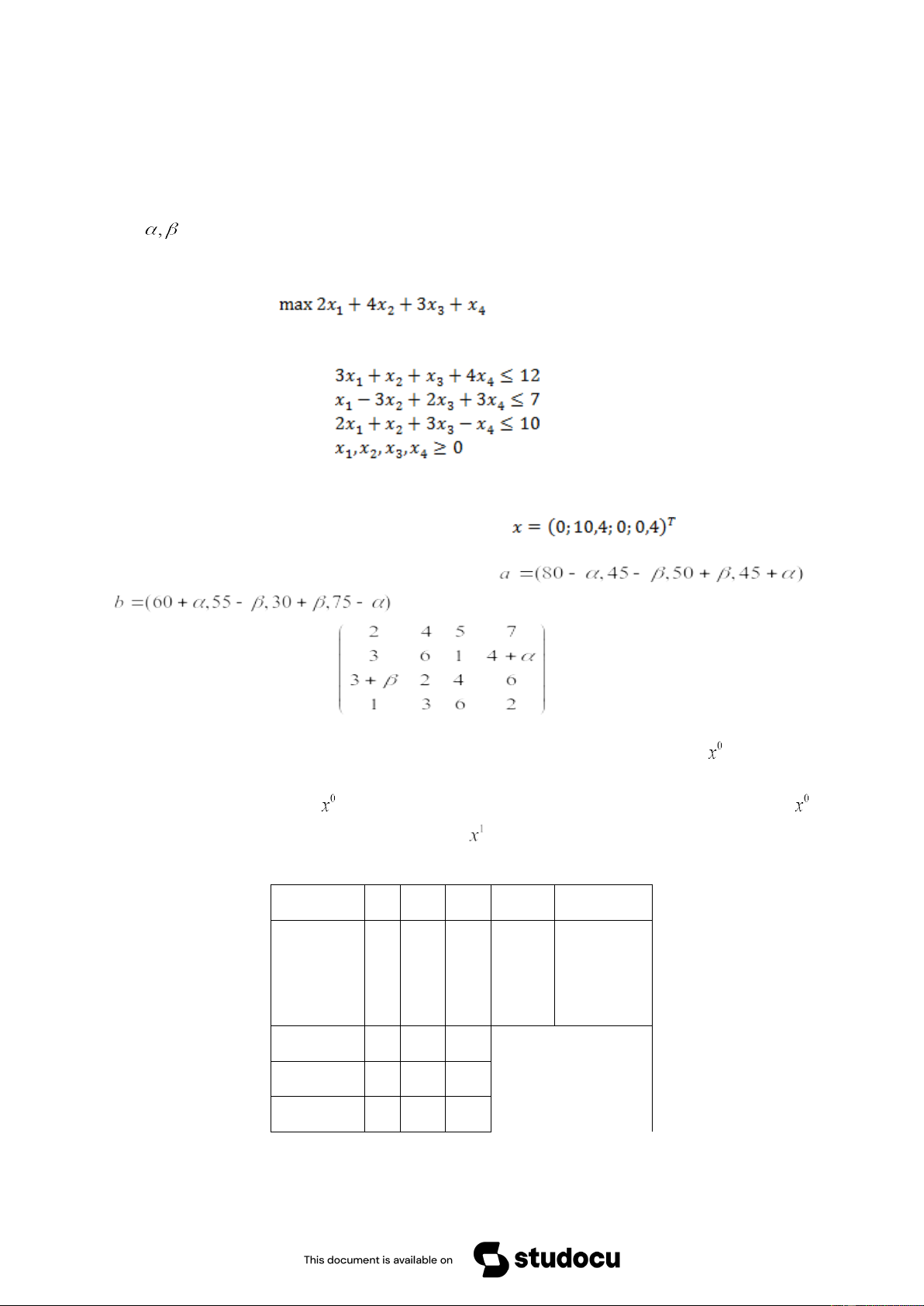 Câu 2: Cho bàitoánv⌀ntảivớia=(80 ; 45 ; 60 ; 45 ) ,b=( 60 ;55 ; 40 ;75), và ma tr⌀n chi phí c=( 2 4 5 7 3 6 1 4+ β ) 3+ α 2 4 6 1 3 6 2