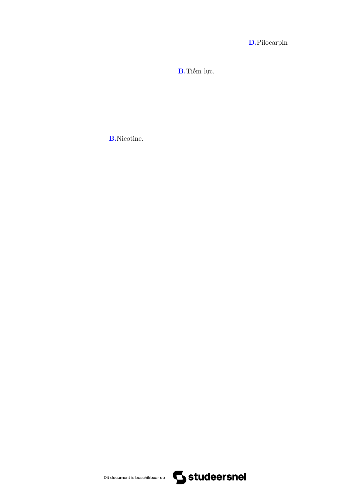 Câu 26. Thuốc nào sau đây có thể gây co cơ thoáng qua, sau đó là tình trạng liệt duy trì và