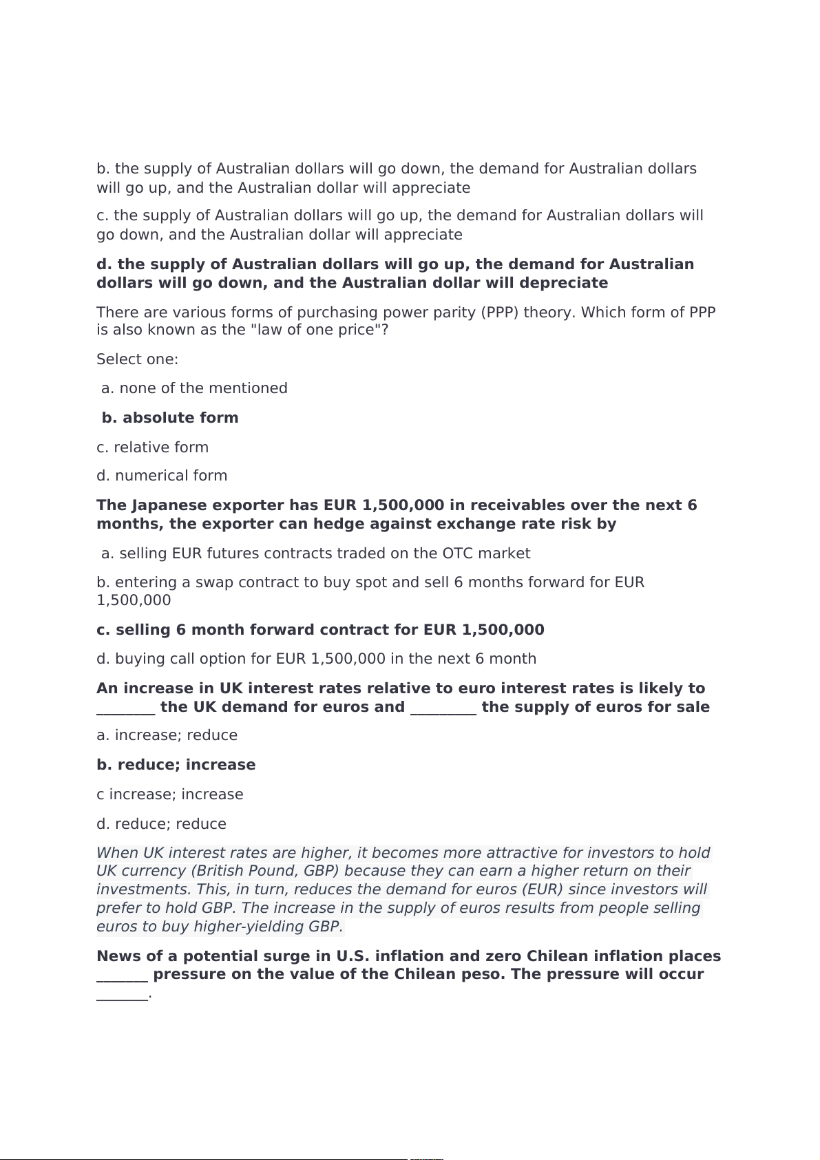 _______ pressure on the value of the Chilean peso. The pressure will occur _______.