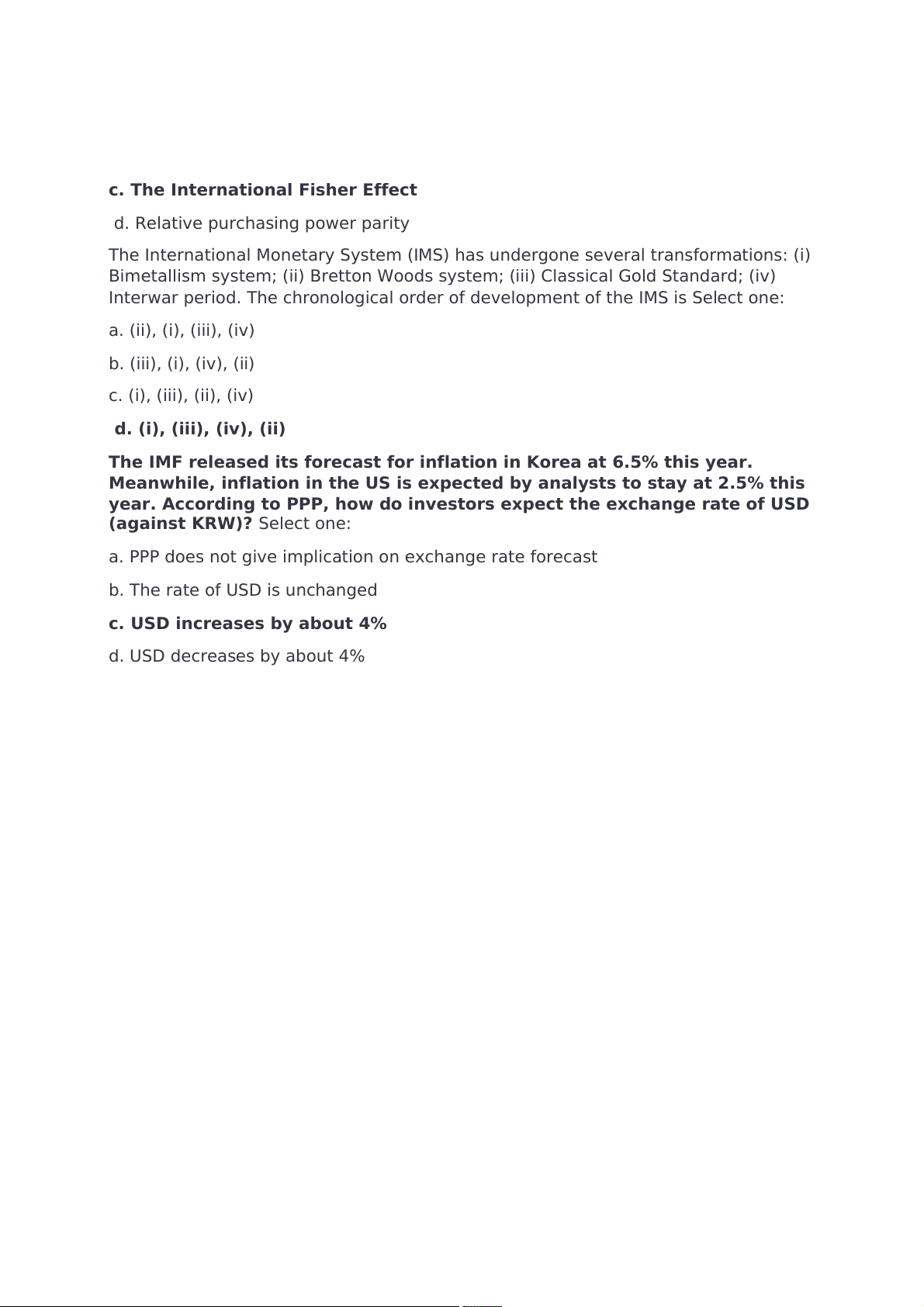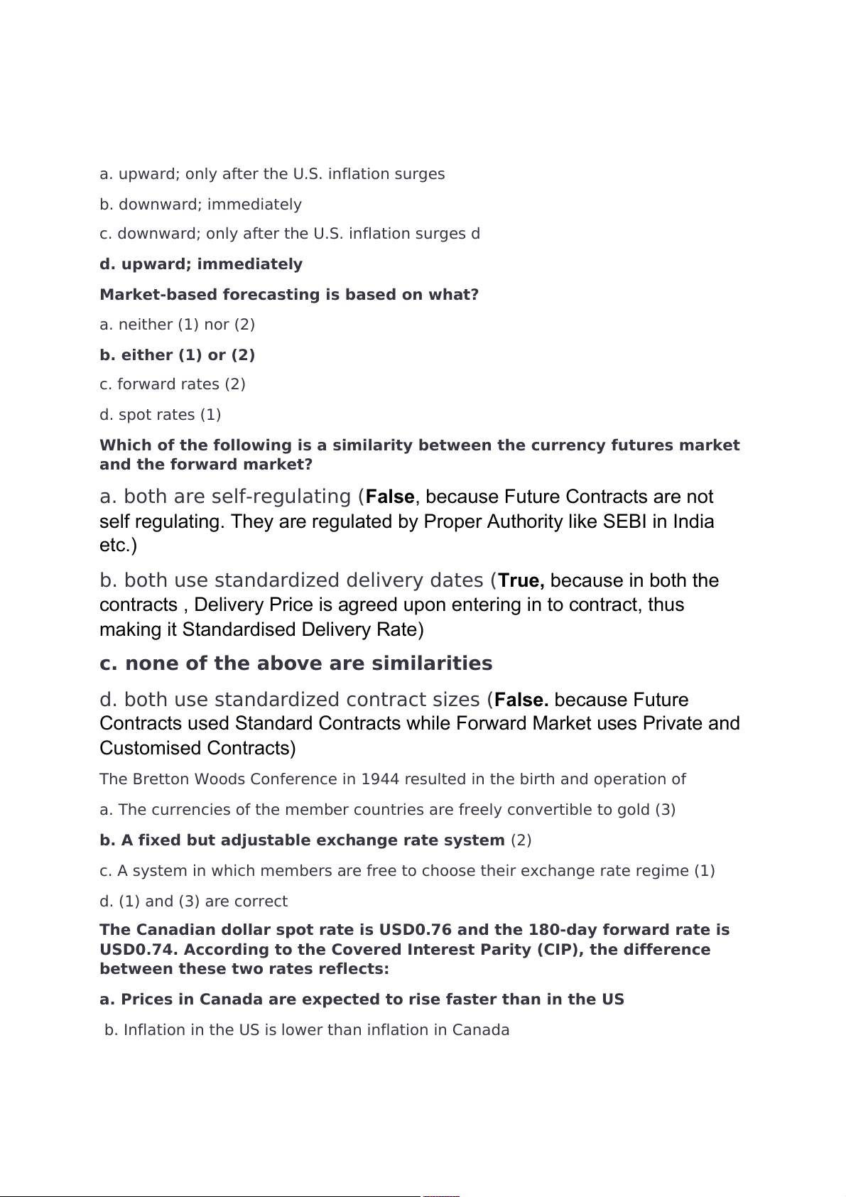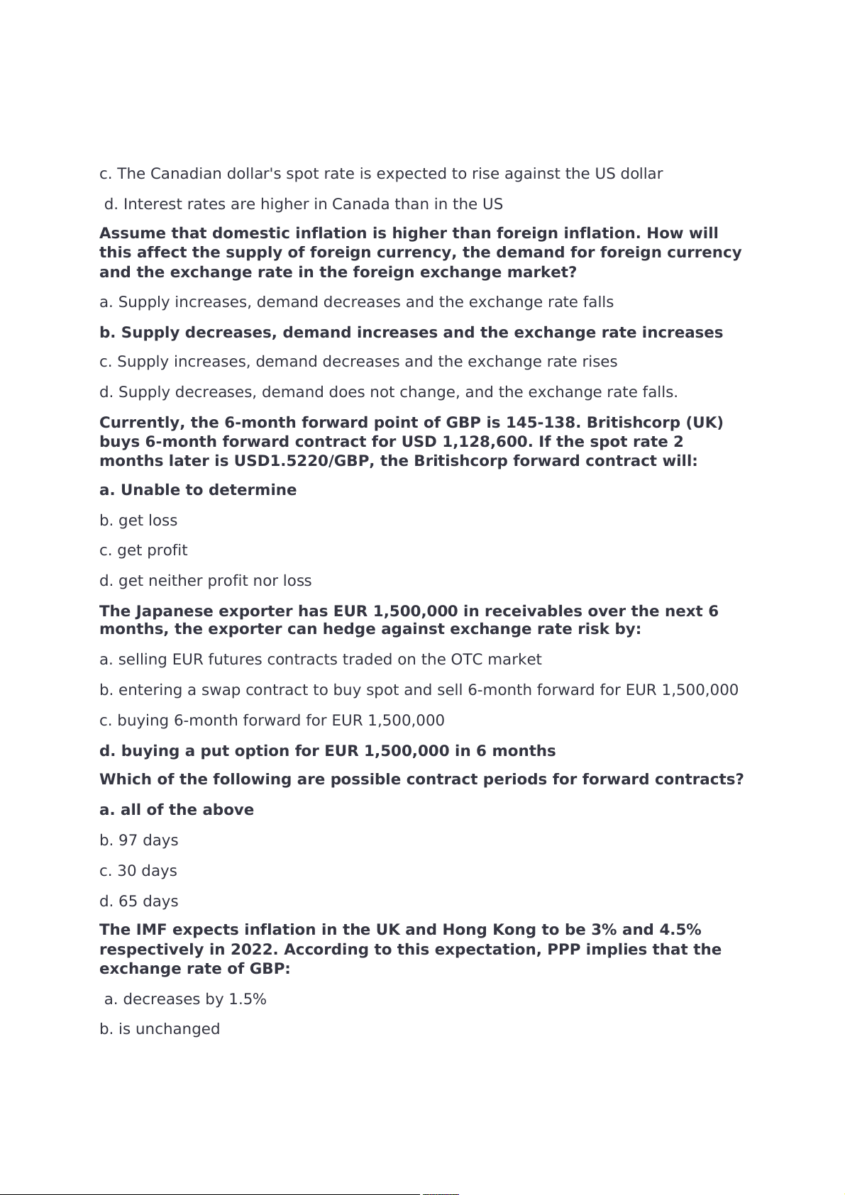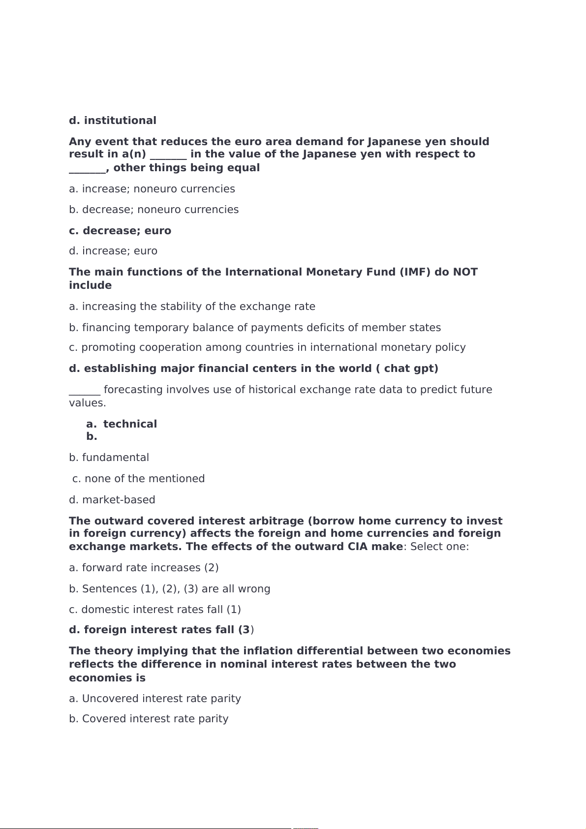 exchange markets. The effects of the outward CIA make: Select one: a. forward rate increases (2)