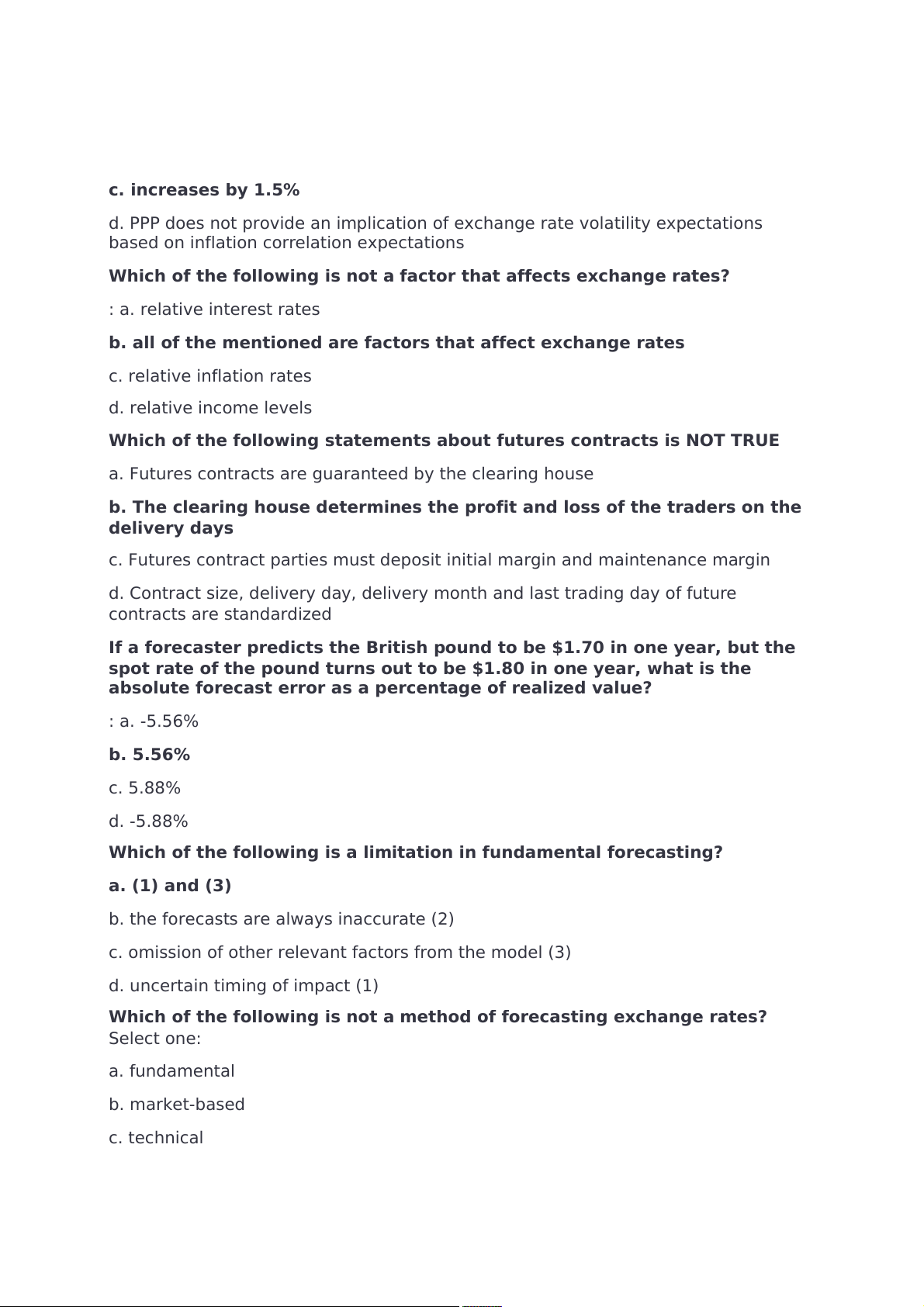 respectively in 2022. According to this expectation, PPP implies that the exchange rate of GBP: a. decreases by 1.5% b. is unchanged c. increases by 1.5%
