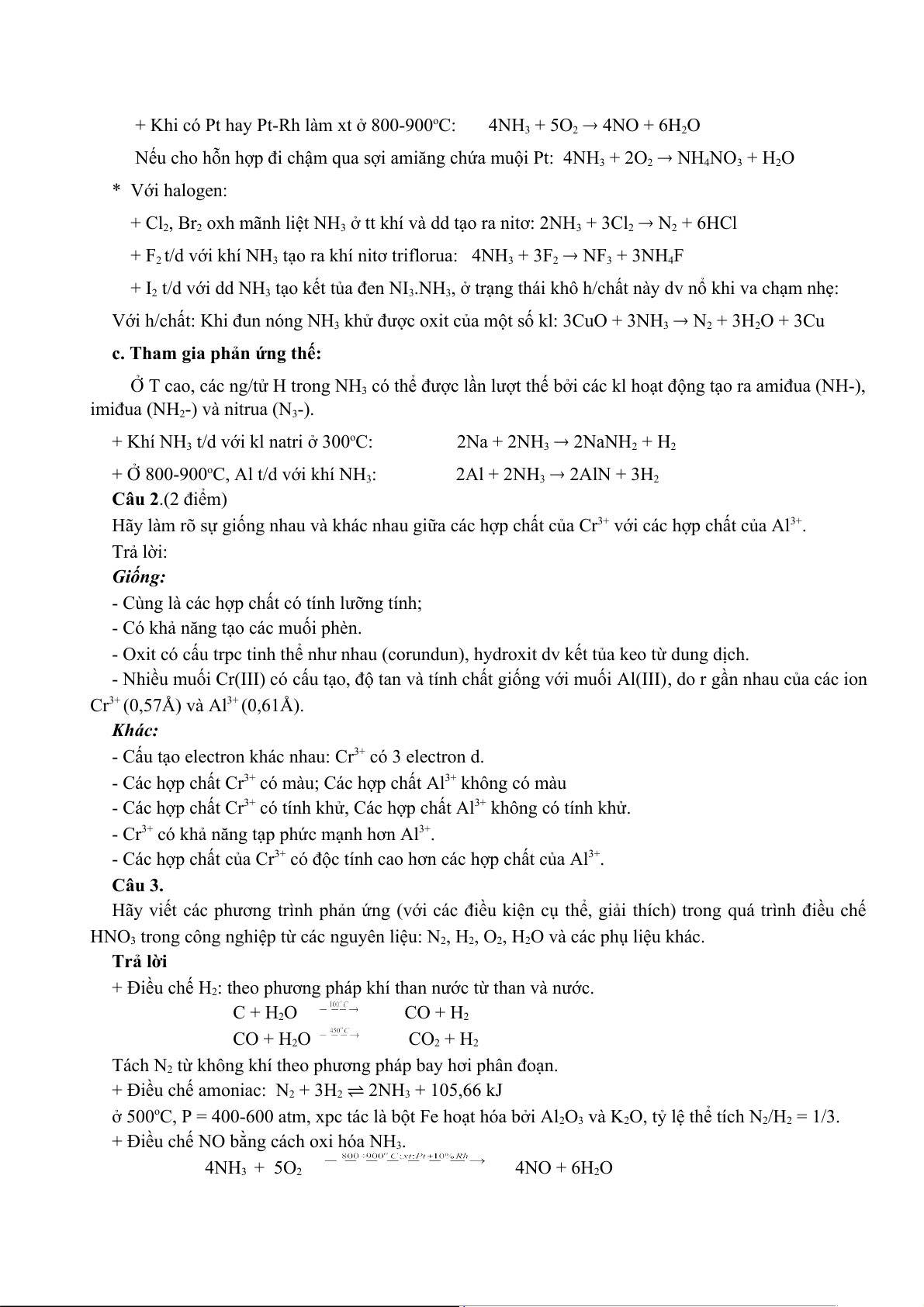 kiện cụ thể, giải thích) trong quá trình điều chế HNO 3từ than, nước, không khí và các phụ liệu cần thiết khác. Câu 4.