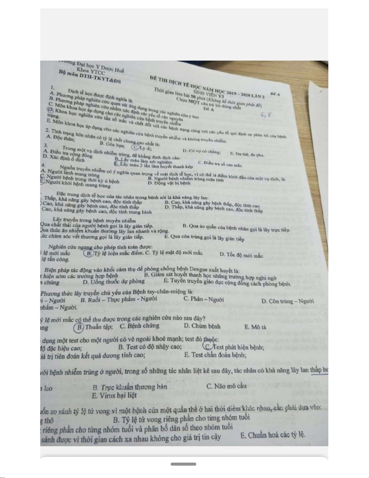 Đề thi Dịch tễ học 2019 - 2020 | Đại Học Y Dược Huế