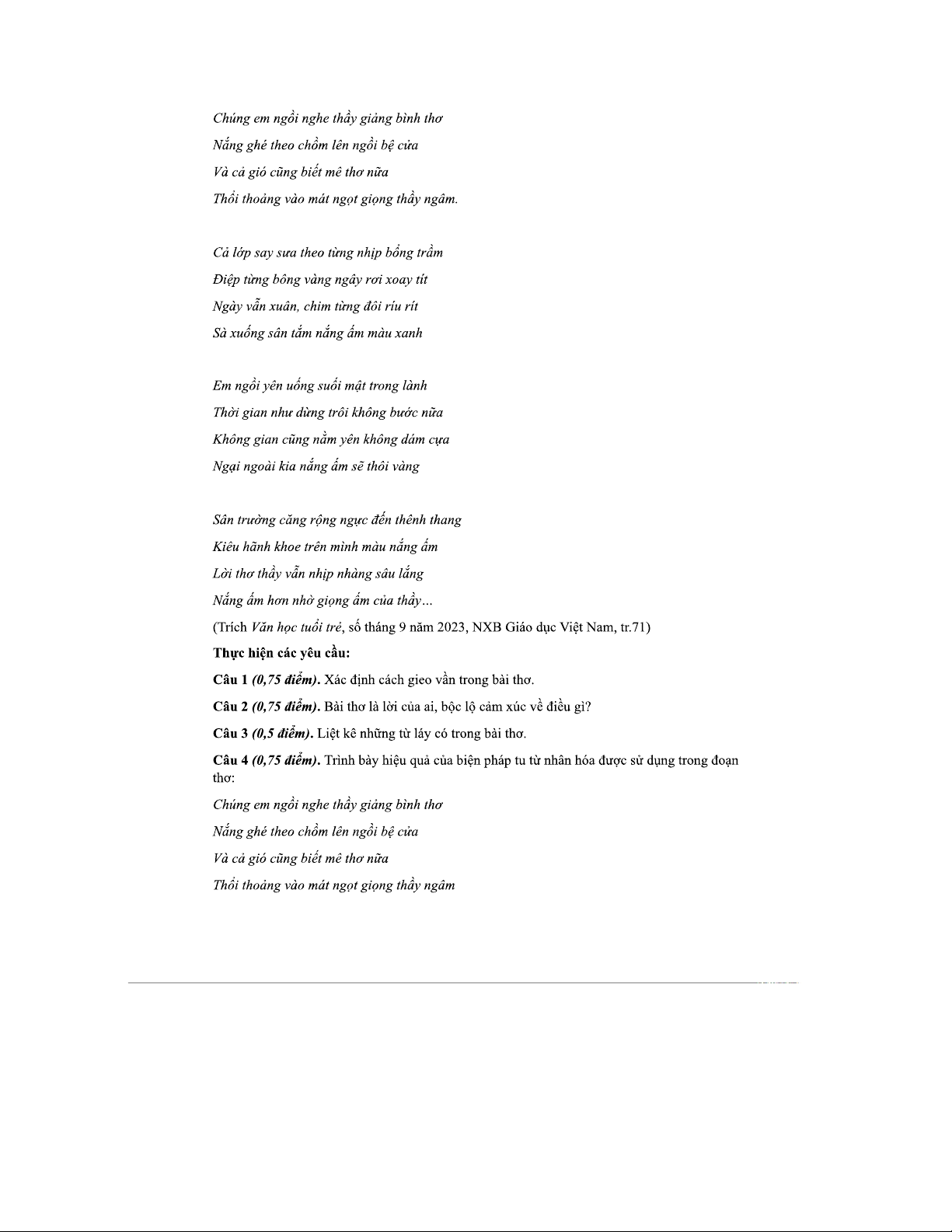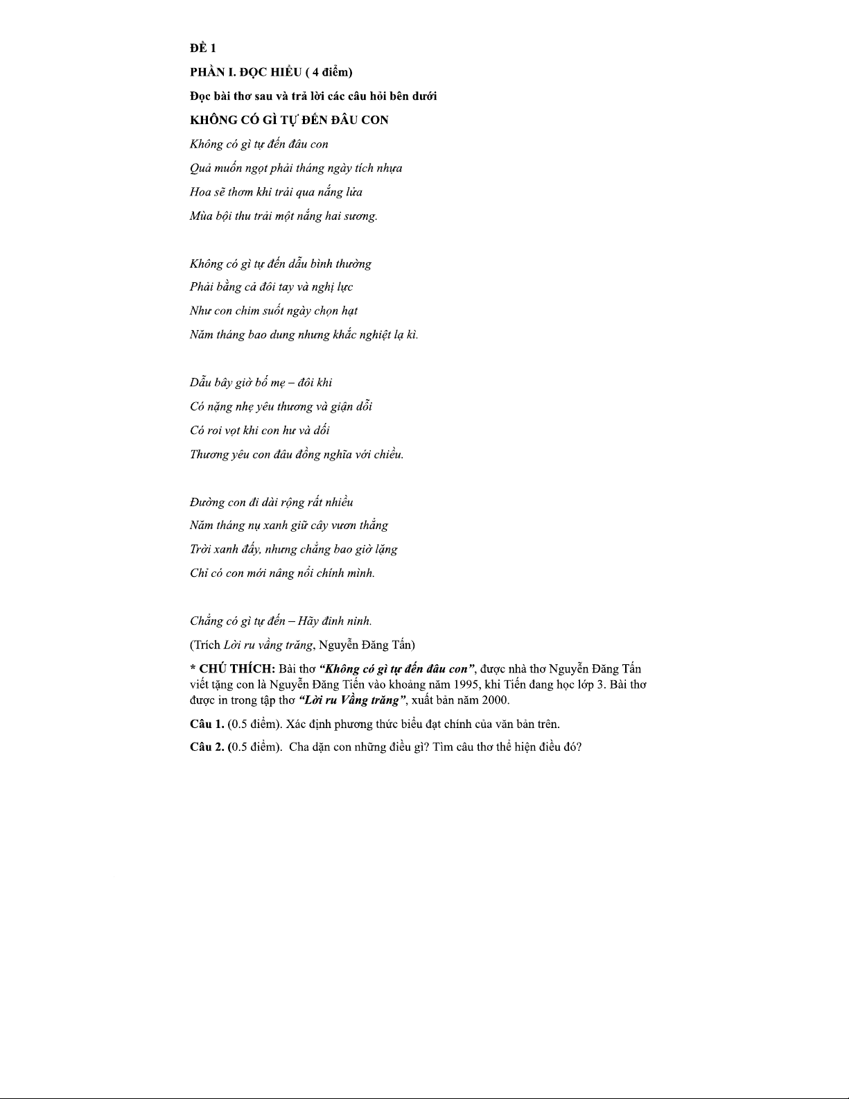 Đề Thi Đọc Hiểu 140425: Phân Tích Bài Thơ "Không Có Gì Tự Đến" và "Nắng Ấm Sân