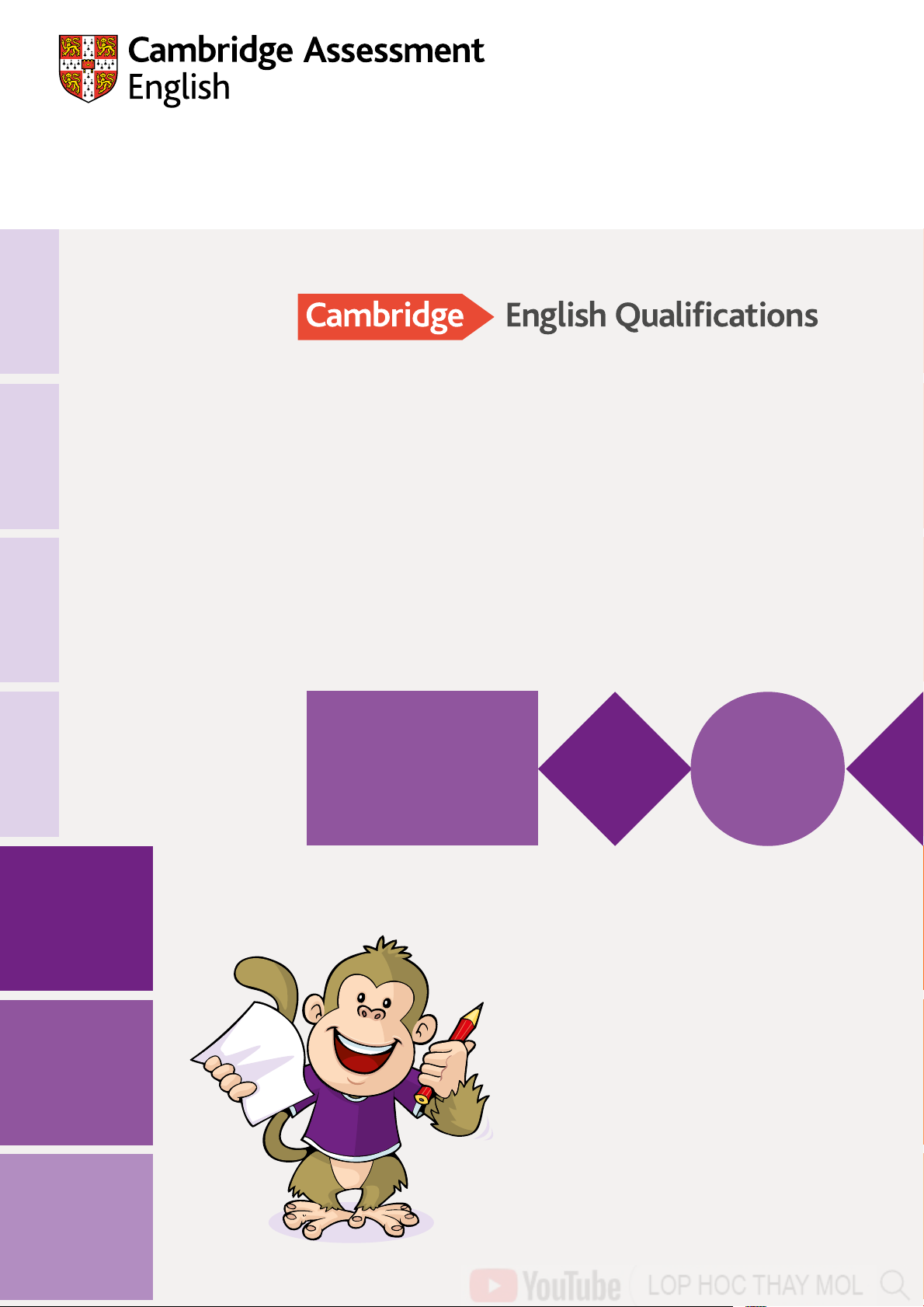 Lines should be drawn between: 1 Lucy girl behind tree 2 Jill girl feeding ducks 3 Dan boy with kite 4 Ann girl reading 5 Nick boy on bike Part 2 5 marks 1 W-A-L-L 2 S-U-N 3 15/fifteen 4 T-I-G-E-R 5 7/seven Part 3 5 marks 1 B 2 A 3 A 4 B 5 C 10 Cambridge Assessment English www.sachluyenthitienganh.com