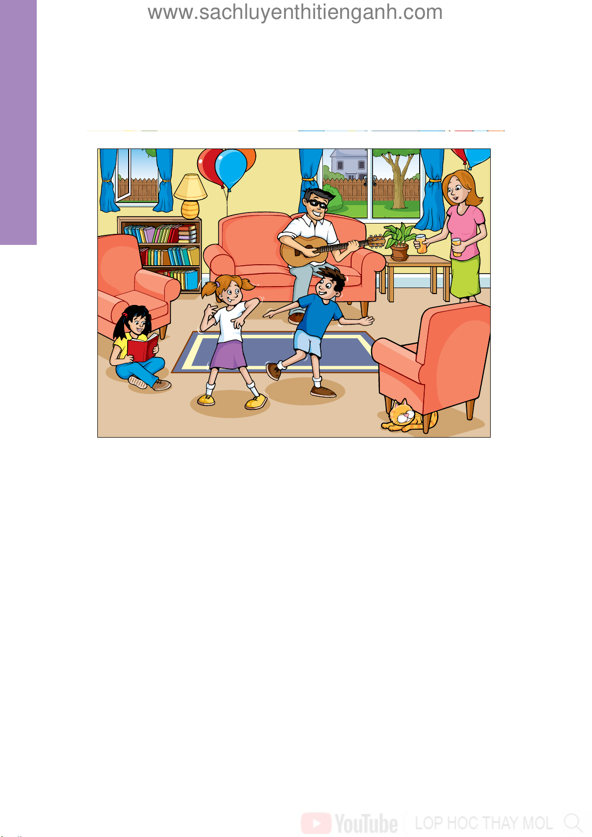 OK! I’m colouring that balloon, the one on the chair, now. Look at the picture. M Great! Listen and look. PAUSE 00’15” There is one example. R Five PAUSE 00’03” Fch