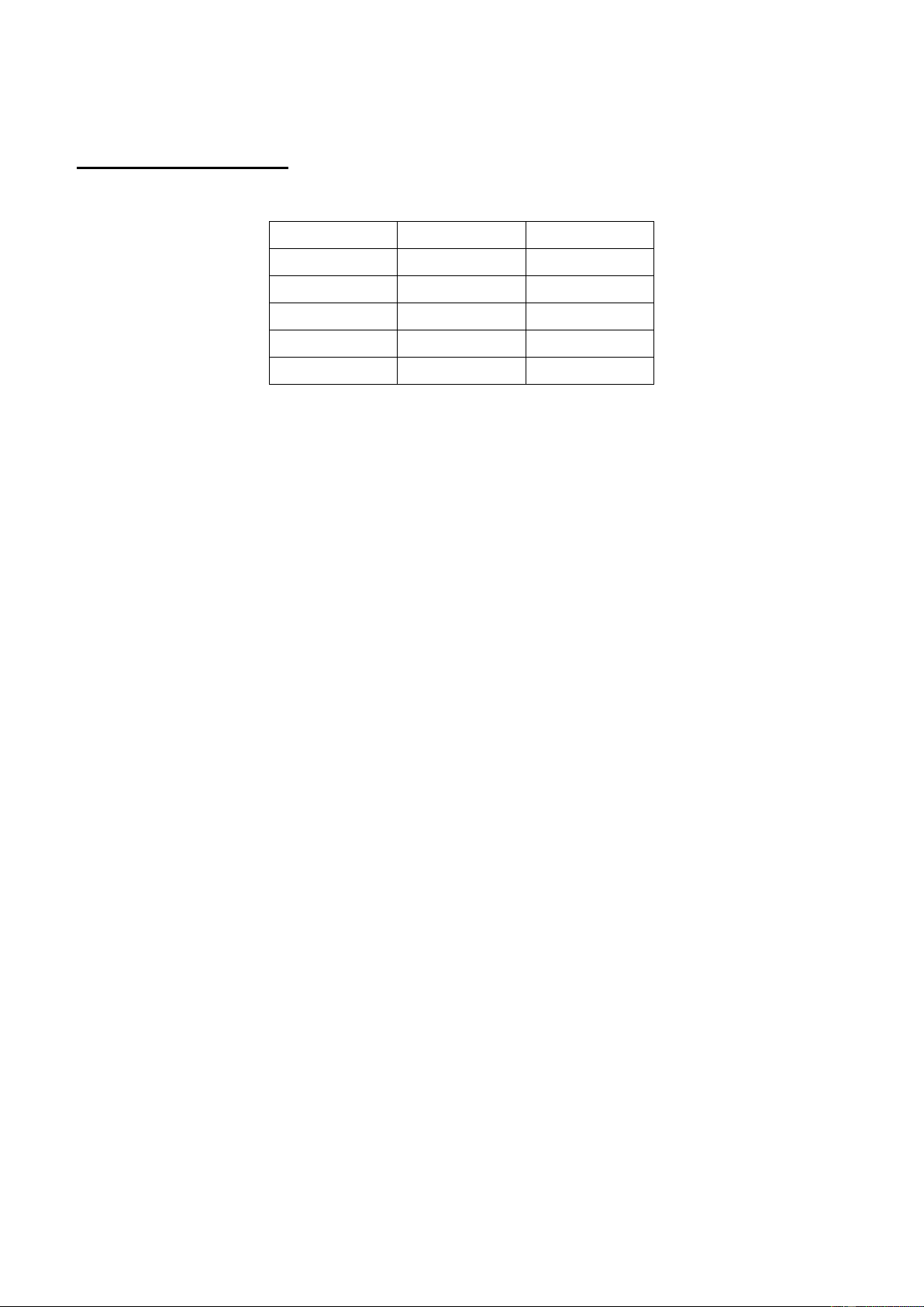 Sinh viên chọn câu trả lời chính xác nhất và điền vào bảng trả lời sau: Câu 1: Câu 4: Câu 7: Câu 10: Câu 13: Câu 2: Câu 5: Câu 8: Câu 11: Câu 14: Câu 3: Câu 6: Câu 9: Câu 12: Câu 15:
