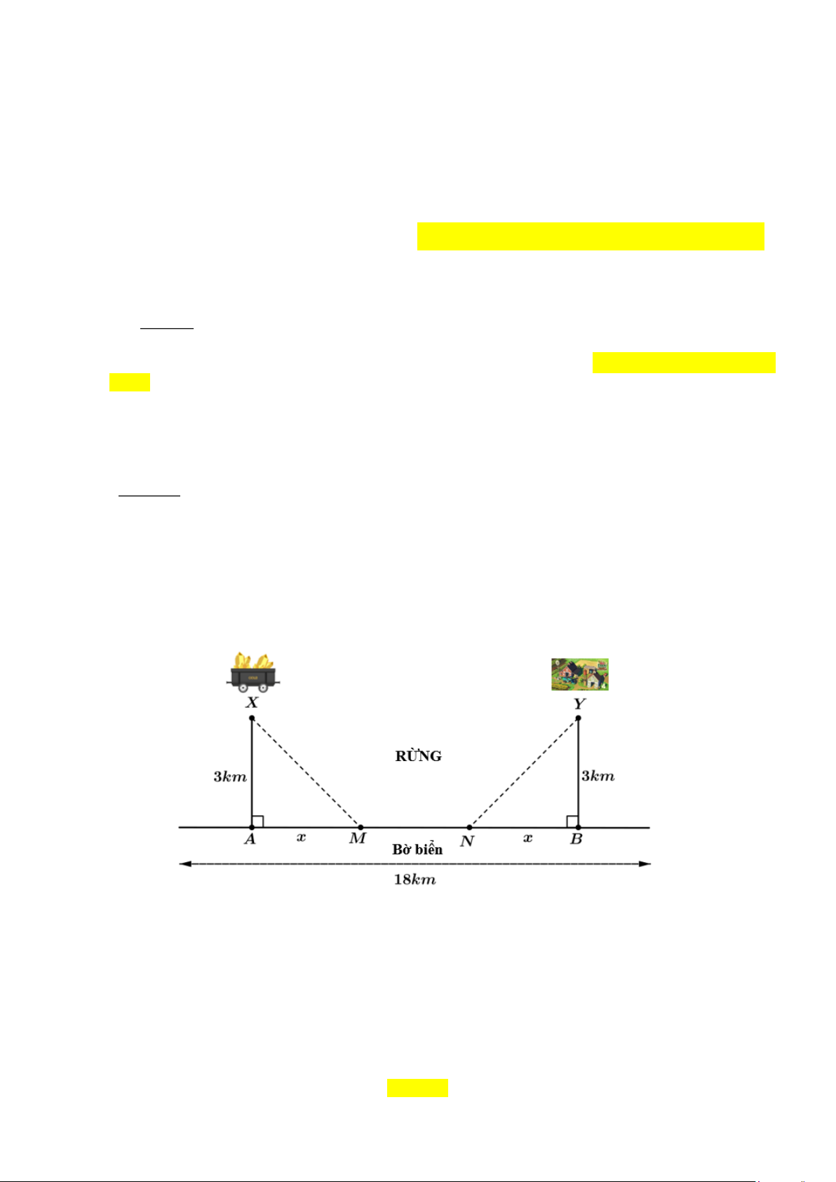 rằng AB = 3 km, AM = NB = x km và AX = BY = 3 km(minh hoạ như hình vẽ sau)