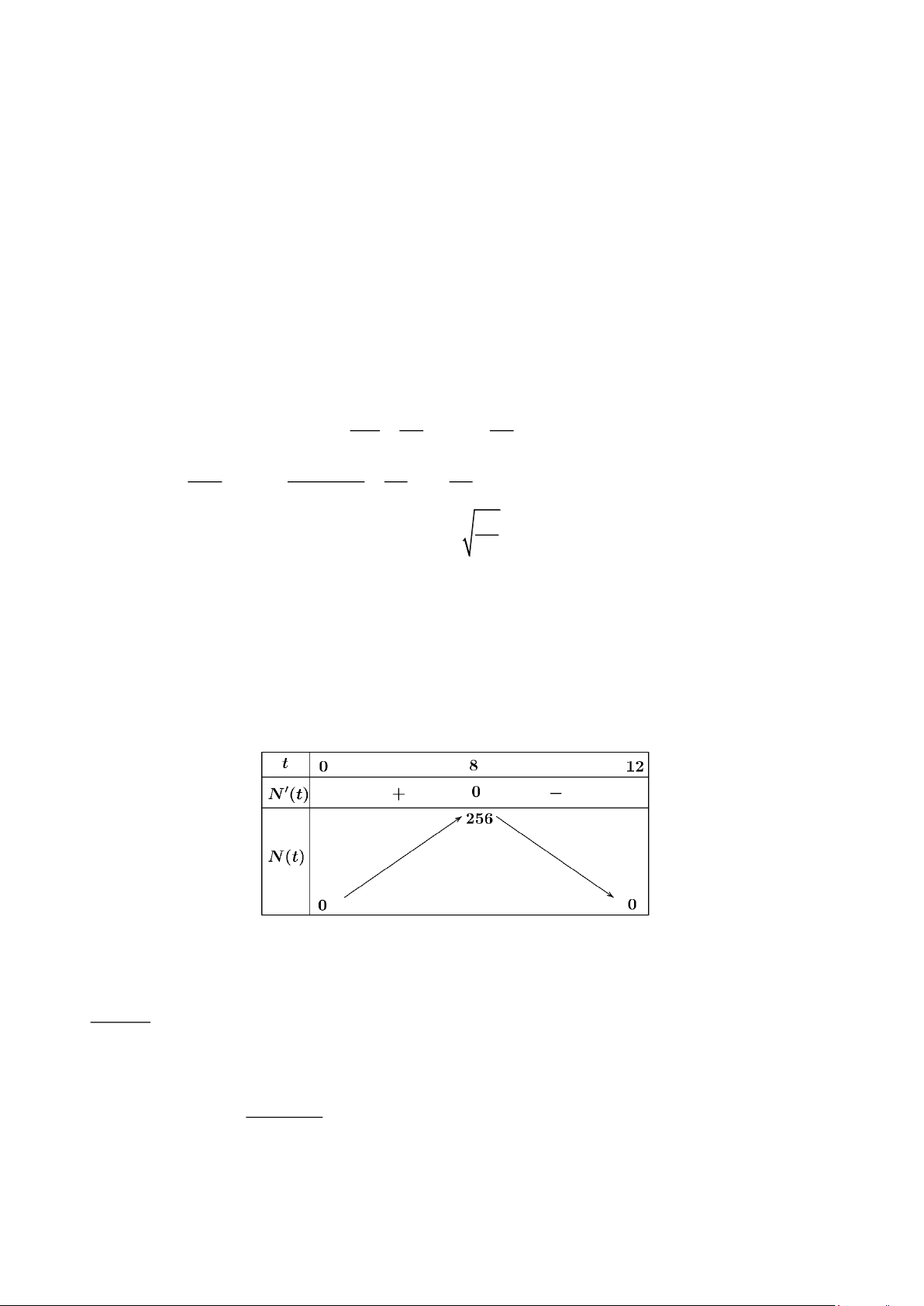 là thời gian (tuần). Biết số người bị nhiễm bệnh tăng trong khoảng thời gian (0;b) , (b tuần). Tìm b . t = 0 Ta có N(t) 2 = 3