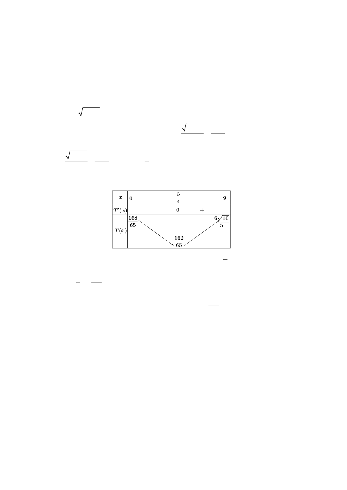 Thời gian Ông Vinh chạy đến Trại nghỉ là: T (x) = 2 + với x(0;9) 5 13 2 9 x 9 x + − 5