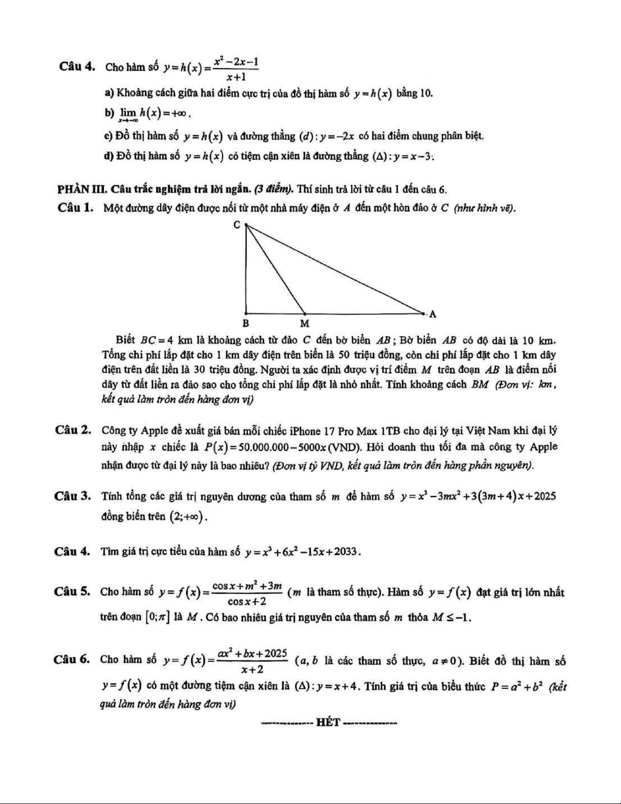 Đề thi giữa học kỳ 1 Toán 12 năm 2025 – 2026 trường THPT Phan Ngọc Hiển – Cà Mau