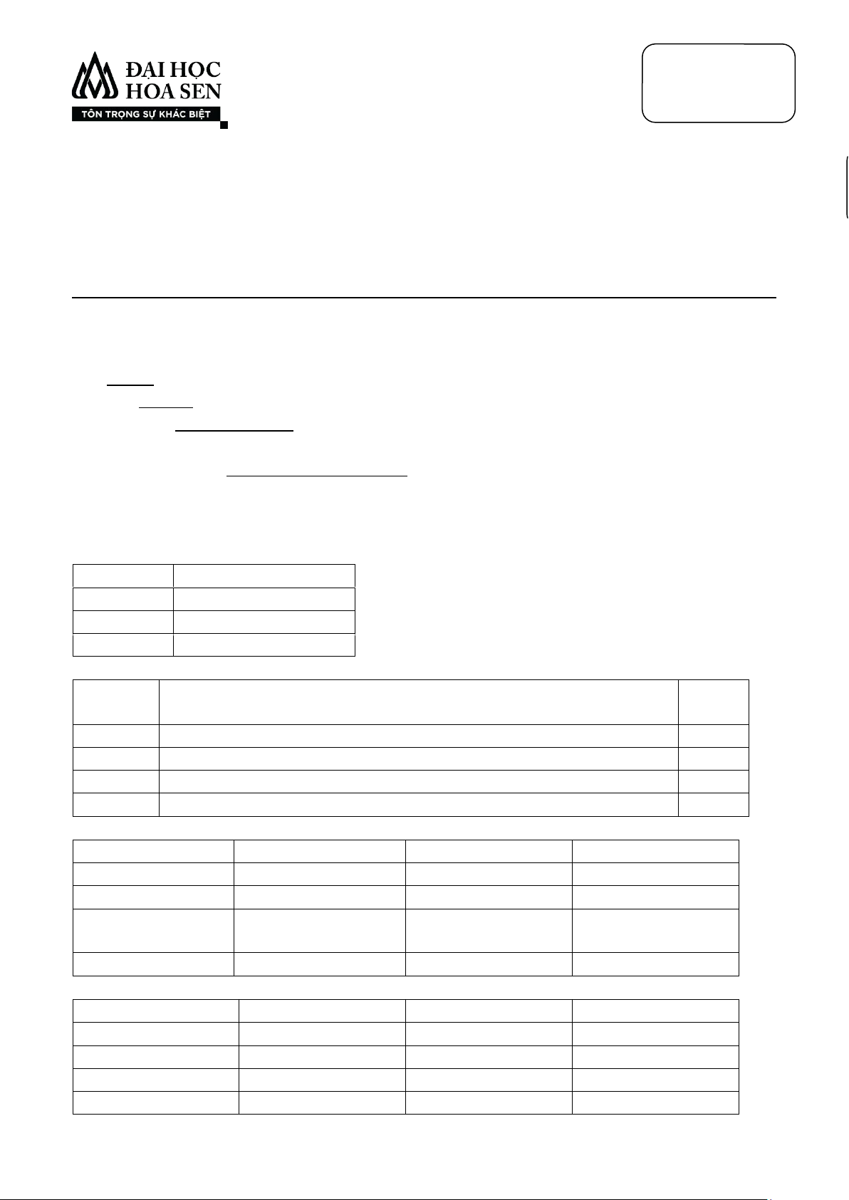TÊN HỌC PHẦN THI : THIẾT KẾ VÀ QUẢN TRỊ CƠ SỞ DỮ LIỆU    MSHP  : IT209DV01    Thời lượng thi