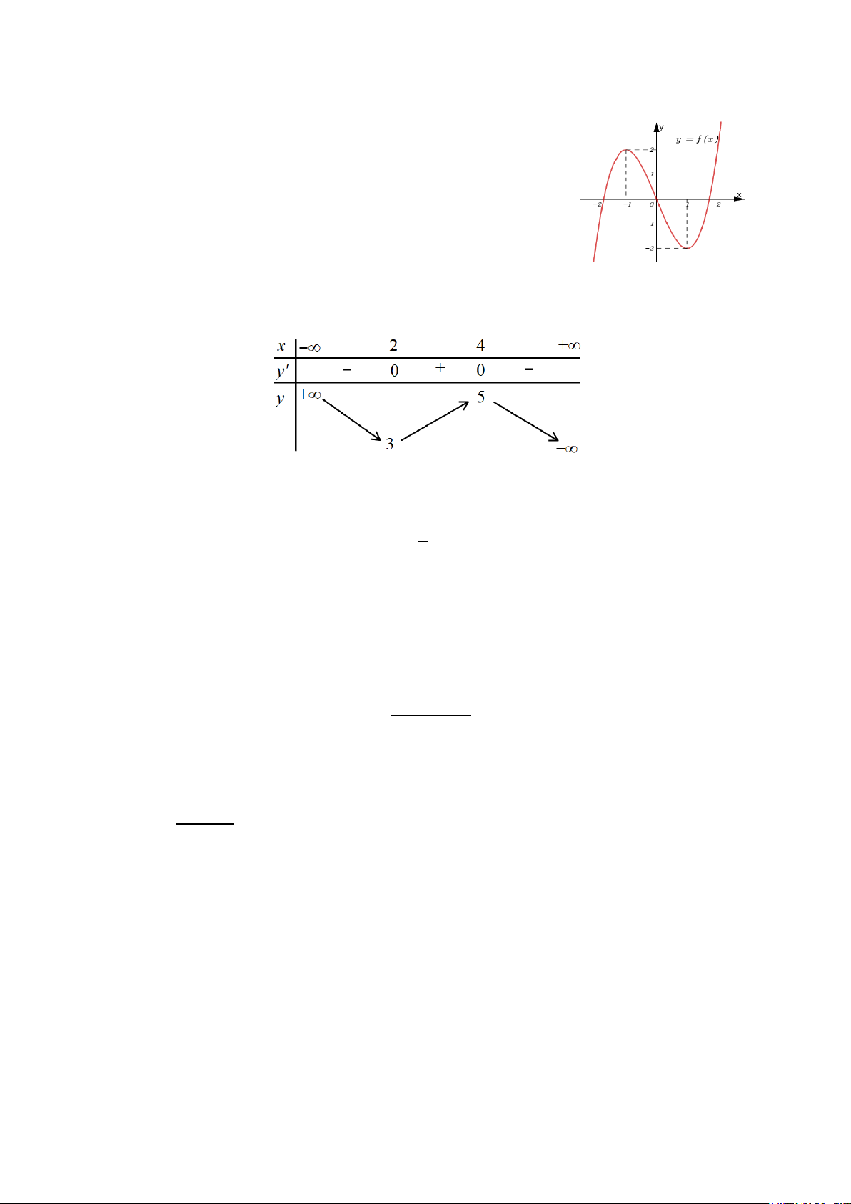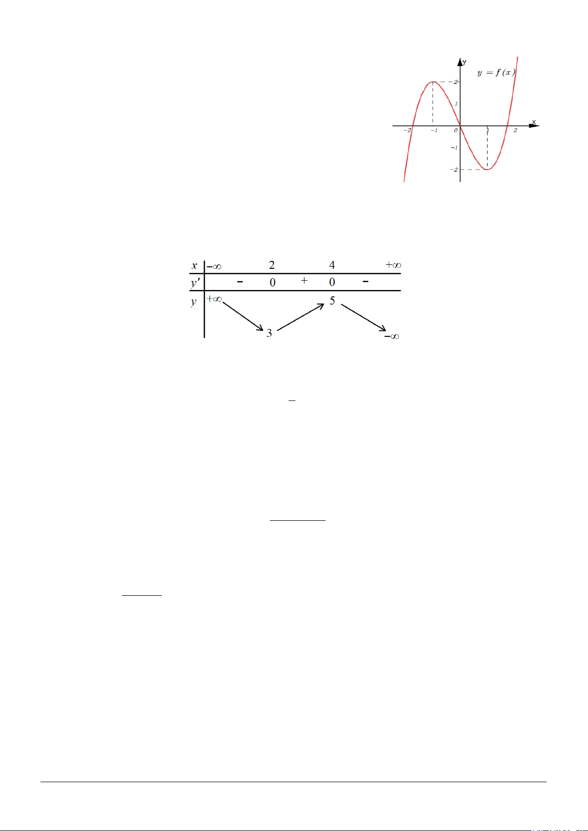 Câu 9. Cho hàm số y = f (x) có bảng biến thiên như sau