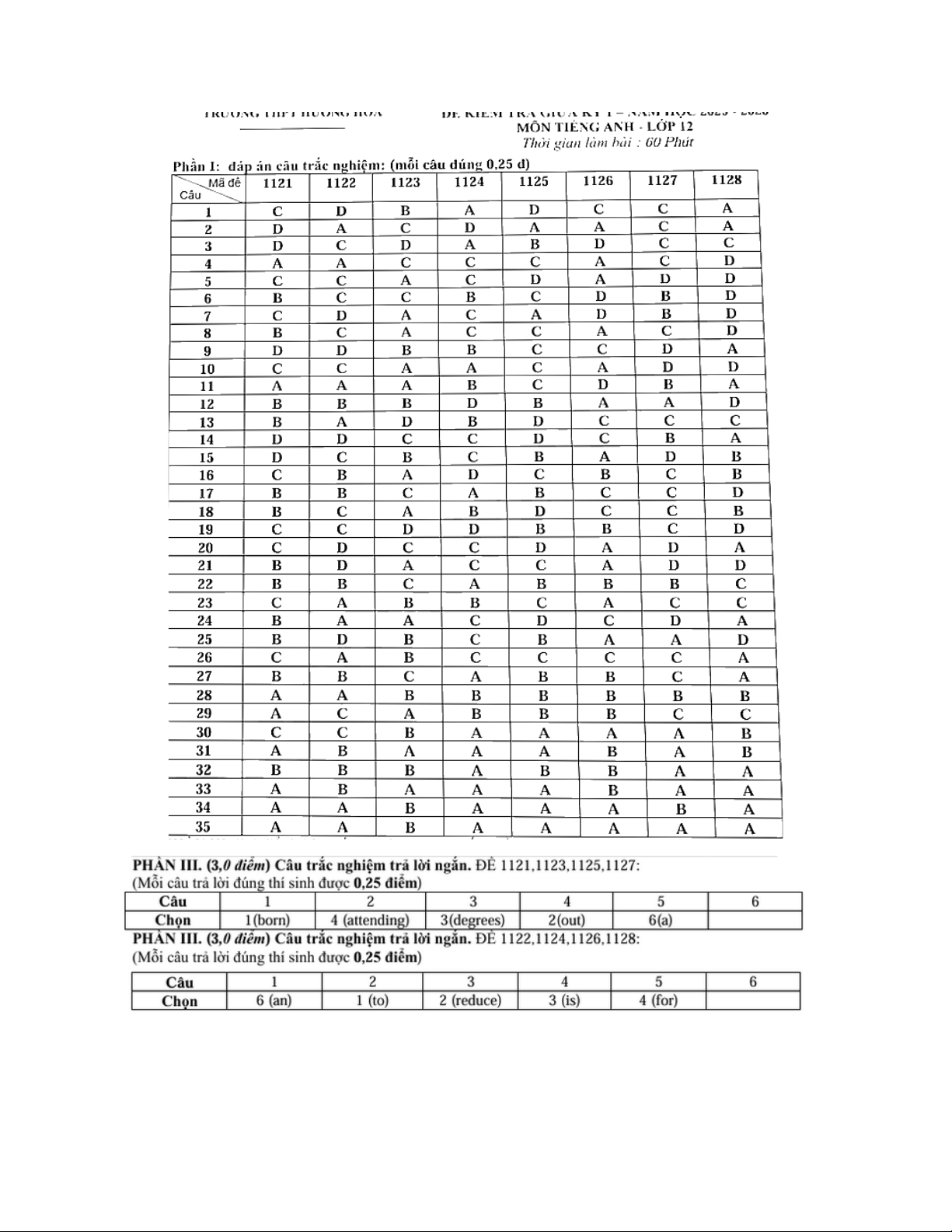 Thời gian làm bài: 60 Phút; (Để có 40 câu)