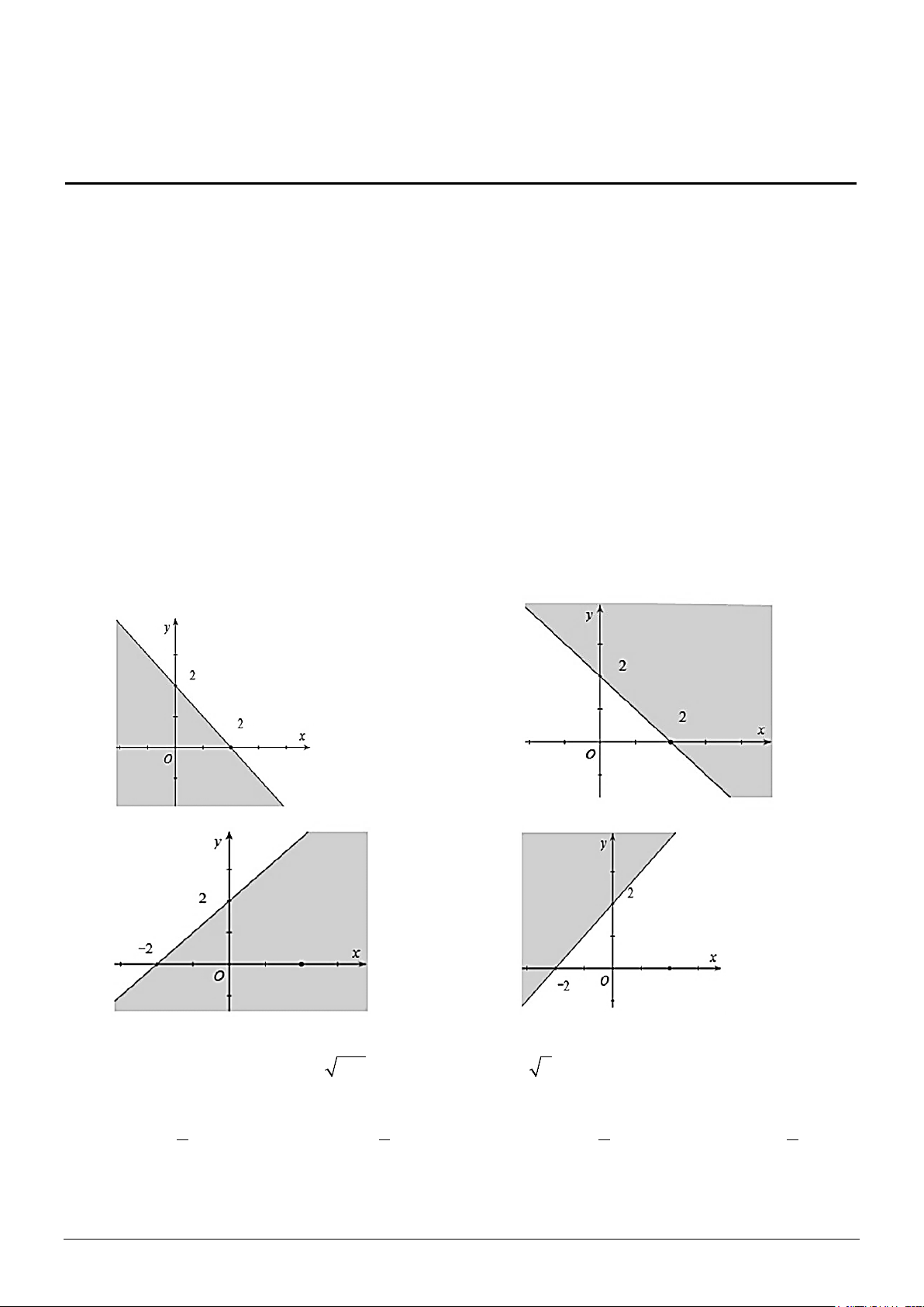 Câu 4. Miền nghiệm của bất phương trình: x y 2 0 là phần không tô đậm trong hình vẽ nào dưới đây ? A. B. C. D.