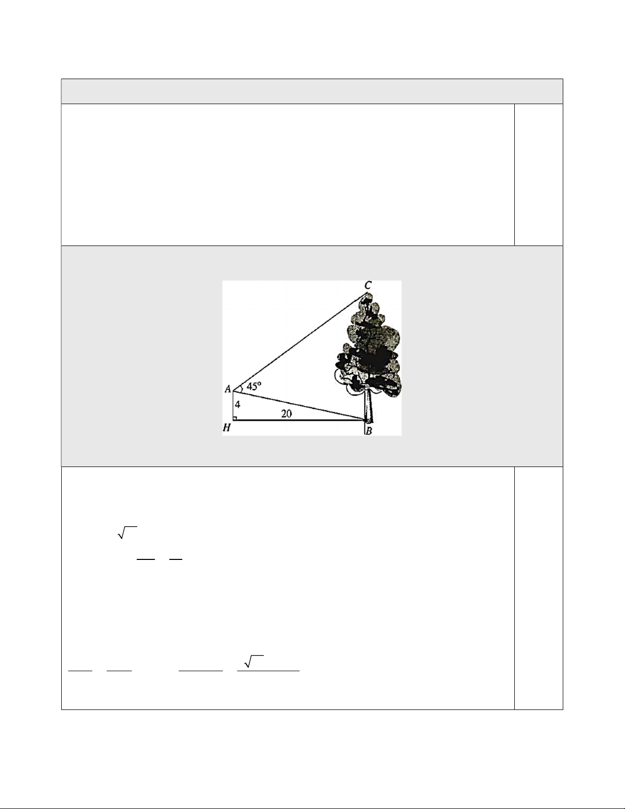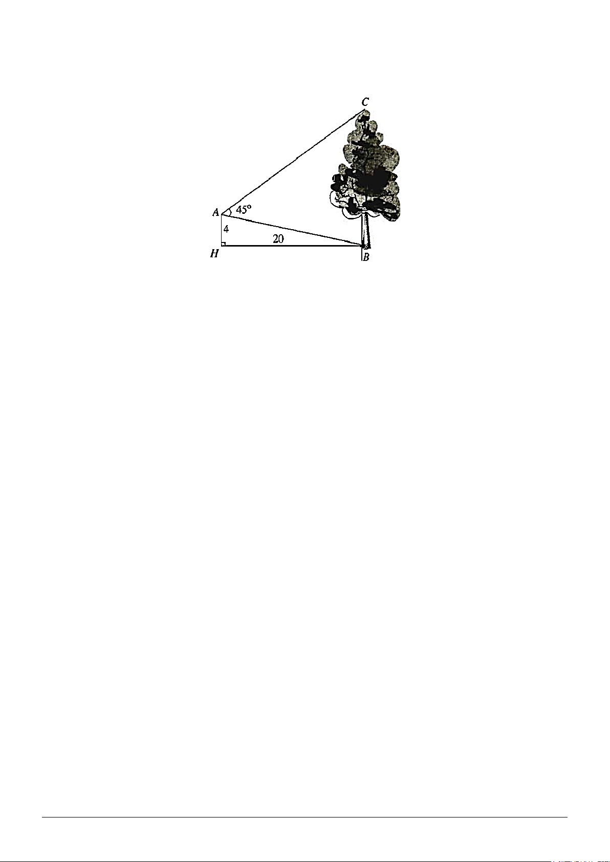 Câu 2: Từ vị trí A người ta quan sát một cây cao (hình vẽ). Biết AH 4m , HB 20m , BAC 45.