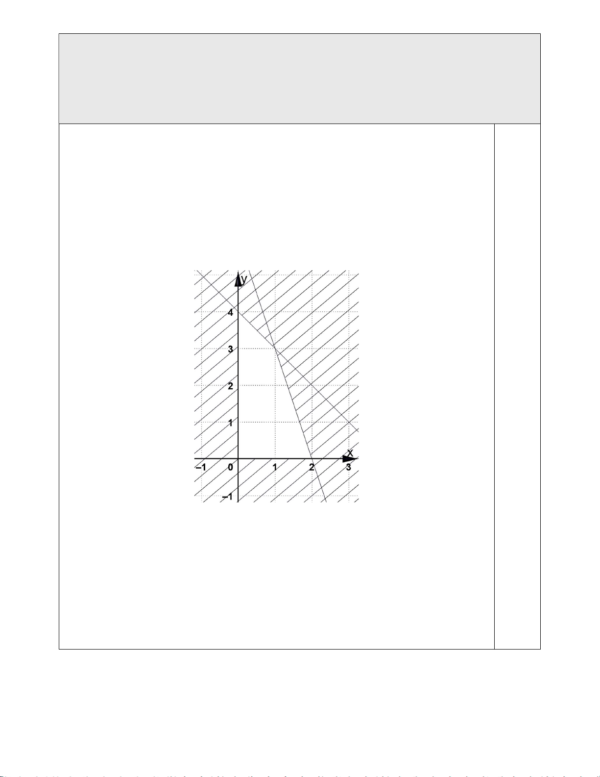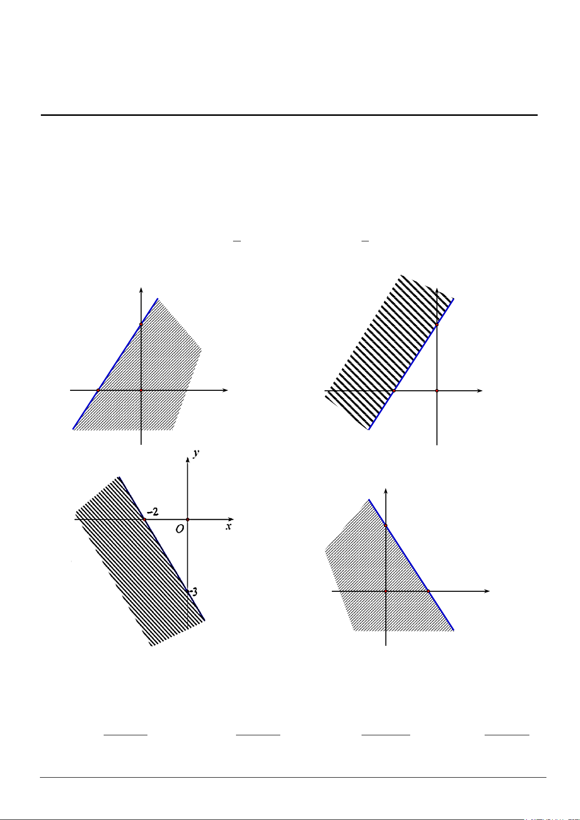 Câu 3. Miền nghiệm của bất phương trình3x 2y 6 (miền không bị gạch bỏ) là y y 3 3 2 − O x 2 − O x A. B. y 3 2 x O C. D. 2x 3y1 0